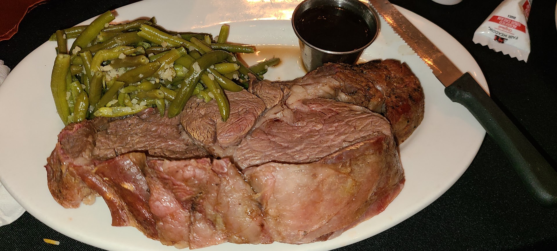 Read moreArrived about 1830 on a Tuesday. Plenty of seats available. We selected a booth in the room without the bar, which my wife instantly dubbed the "cowboy ballroom." Service was awesome. I ordered the Flat Iron steak (market price was $25). It was worth it. Absolutely delicious. The sides were okay. Did I mention the steak! Wow! She had the shrimp kabob. A little over cooked but okay. She thought the steak was awesome, too. I also had a pint of the Voodoo Ranger IPA which was a nice brew. We shared a vanilla/caramel crunch cake for dessert. We parked on the street out front, and said hello to the...