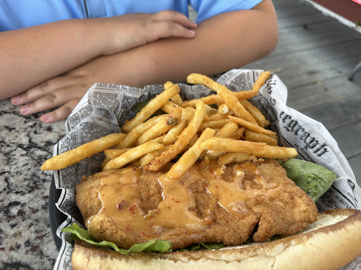 Read moreI donât often leave reviews but after our experience I really felt the need to document what happened. We were excited to find a dog friendly place in a great location of town. There was a wait so we got a buzzer and walked around a bit while we waited. 40 ish minutes later our buzzer went off and we promptly walked back to the restaurant. We were seated at a table on the deck. The host said he was going to look for a kid menu for our toddler and would be back. While we waited we got our selves and the dog situated, looked at the menu and I got some activities out to keep the kiddo entertained. The host came back some minutes later and said that he made a mistake and that another group needed our table. We were super confused as we had waited a while and also been at the table for at least 5 minutes. The host said the other group had been waiting as long as we had. My impression is he told them they could have the table after they complained enough. He said we could sit on the barstools but with a dog and toddler that wasnât appealing to us. Nor was the idea of being pushed to the side, no longer having a table and having to watch another group enjoy the spot we were just kicked out of. So we left and ended up at another dog friendly spot with better service and great fish.