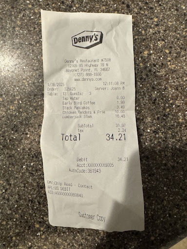 Read moreOn 10/12/2024 at appropriately 8:15, my wife and self went to Dennys for breakfast. The restaurant didn't appear busy, but after sitting down and getting a hot coffee and not seeing anyone for 15 minutes heard about a prayer group through the regular patrons eating in the back party room. Not 1 employee took the time to explain the wait. Yet the 2 other employees kept walking by nobody made eye contact or offered assistance in any way. It is clearly every one for themselves. Finally I walked to their service area for assistance, in which I was told everyone worked hard yesterday, today is today, yesterday's past has nothing to do with our breakfast except the fact no communication. We order the stuffed cream cheese strawberry brioche slam (just do it you won't be disappointed for sure) the cooks hit it out of the park, nailed it, couldn't have been better. My wife and I ordered the same including hash browns and I a side of sausage gravy for my hash browns. Food comes out including sausage gravy, no hash browns after bringing it to her attention I'm told about cooking times (really cooking is cooking why lie and not say I forgot), so just 1 order of hash browns comes out have to wait (don't forget our earlier cooking tutorial about long cooking times on hash browns, while we wait for our 2nd order. Why didn't we wait for the whole order to be ready all at once, including those long cooking hash browns. THE COOKS HIT OUR MEAL OUT OF THE PARK, THEY DID MORE THAN COOK, THEY MADE OUR EXPERIENCE AND SAVED THEIR CO WORKERS INEPTNESS. Our waitress always smiled and was polite very, very, forgetful. Forgot our creamer, our to go boxes. This total breakfast nightmare lasted 1 and a half hours, that's right quick breakfast not formal dinner night on a cruise. This is the BEST PART you can tell the regular patrons and at least 7 came, ate, paid, left and we're still waiting. My suggestion is if your not a regular and hungry go south to Dennys on Trouble Creek by Sam's club they seem to treat (through my own personal experiences there) everyone the same, every one's a regular. I'm not complaining about the food, the price, quantity, which to me is more than fair. My total bill for breakfast $48 and change, I left $60 regardless of the terrible service I JUST HOPE SHE REALIZE COMMUNICATION IS THE WAY TO GO AND HOPEFULLY HER CO WORKERS START HELPING EACH OTHER SO THEY CAN HELP MAKE PATRONS DINING EXPERIENCES THE BEST POSSIBLE EVEN IF THEY DON'T START THAT WAY. I still would suggest Trouble Creek Dennys as a 1st choice. I purposely didn't name anyone, they know, please use this as a learning tool. Thank you for being there that day, you guys can fix...