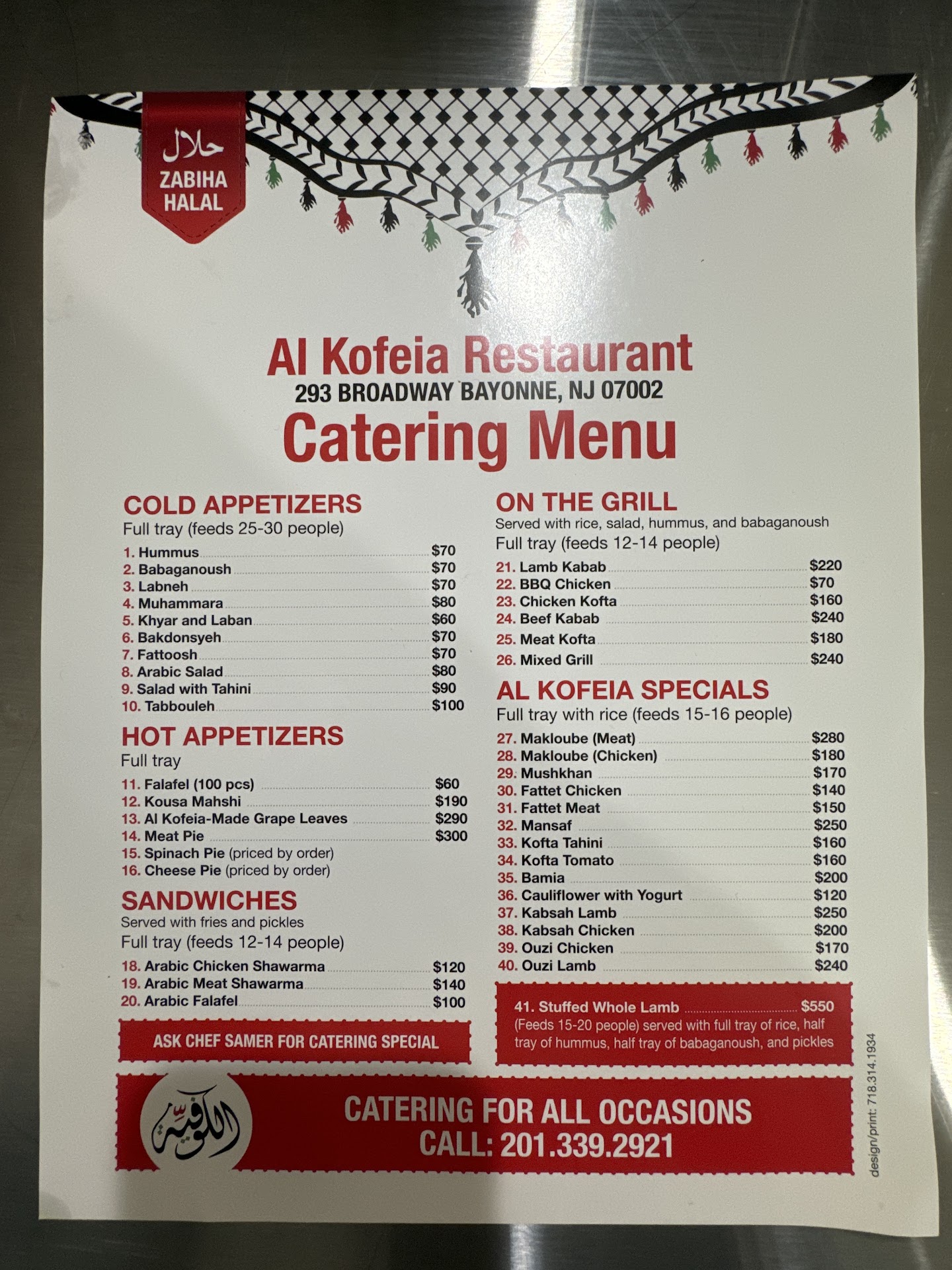 Read moreI was thrilled when Alkofeia opened in Bayonne! For a long time, there were no Middle Eastern restaurants in the area that I truly enjoyed, and I used to drive all the way to Paterson to get authentic Palestinian food. Now, Alkofeia is just a few blocks from my home, making it incredibly convenient—whether I want to walk, drive, or have it delivered.