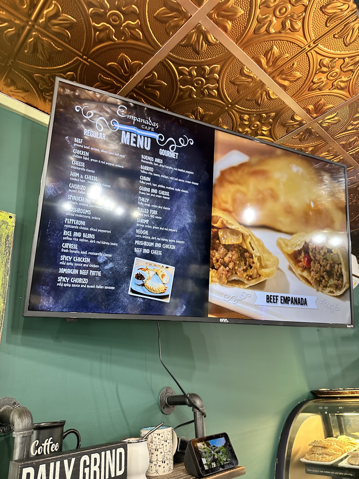 Read moreThe man is a one man show. Cashier, cook and baker. I've never experienced so many versions of empanadas. Something for everyone and decently priced. He has some premade and heats them in an fancy oven right in front of you. Even has names branded in them. Very smart for those who get a variety. Small shop. Not big enough to eat in. Just big enough to wait. Love that he had a screen menu and it had beautiful videos of the empanadas. Something you see when you watch Gordan Ramsey shows. I had the shrimp, spinach/parmesian, and something else I forgot. Def wanna go back...