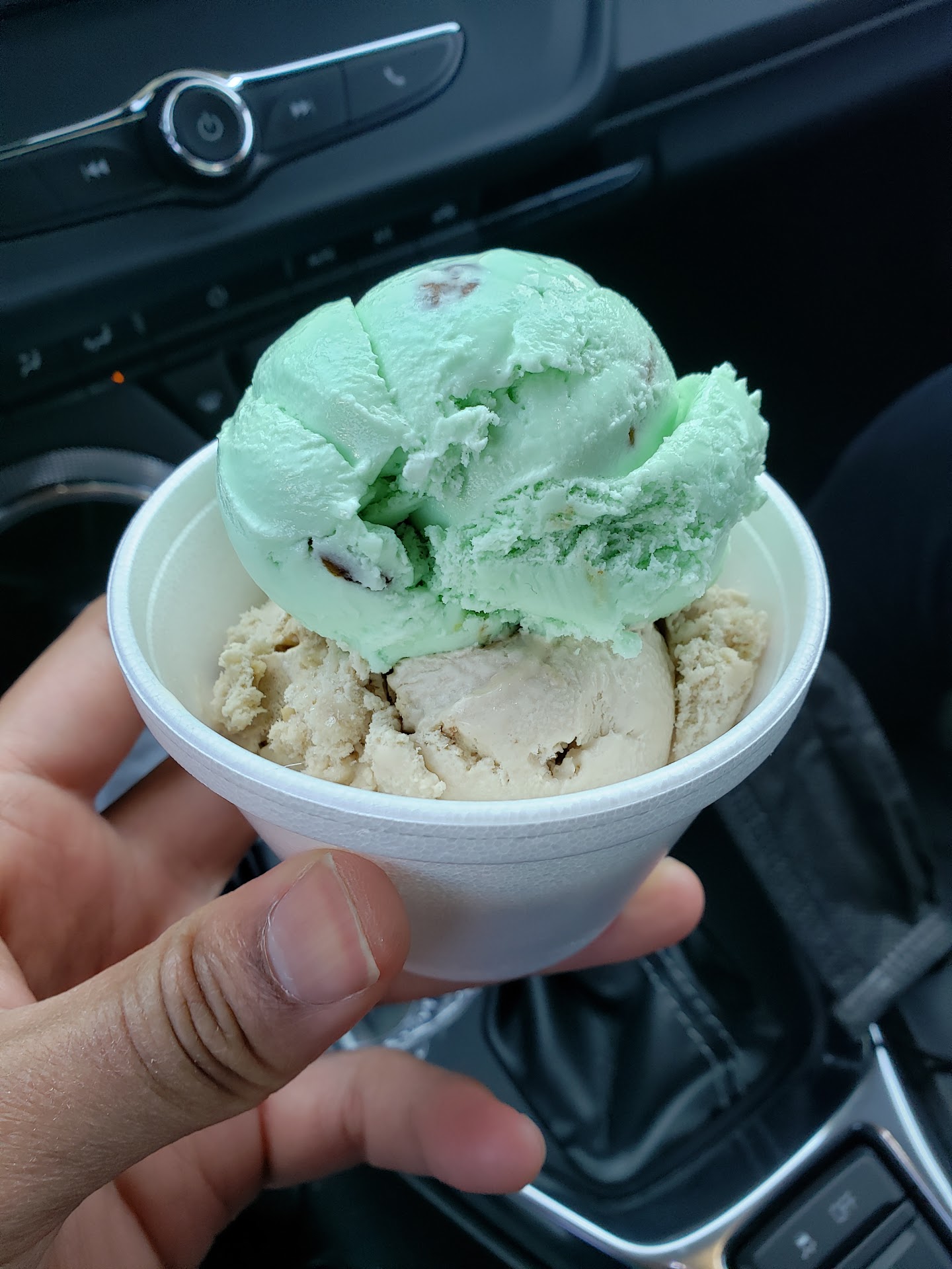 Solid ice cream here...no pun intended. During my visit I ordered the medium size serving which included 2 scoops of their home made hard ice cream for $3.75.