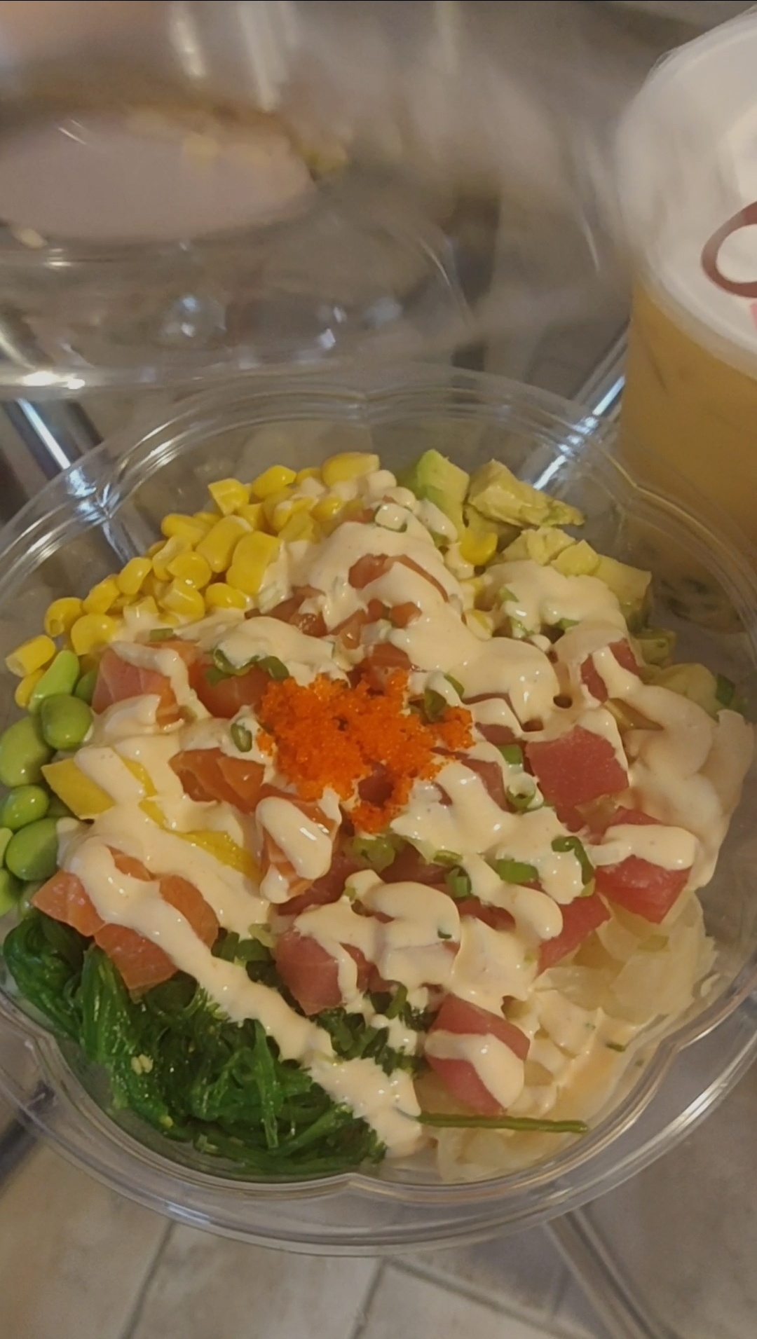 I ordered a custom poke which included ahi tuna and salmon protein. I also added corn, edamame, scallions, seaweed salad, mango, pickled ginger, masago, and avocado. Overall everything is fresh and tasted good except the spicy mayo. It wasn't spicy enough. Barely a kick. If you look at the picture, it's more like a fainted yellow/orange sauce rather than a red/orange color. That mean they didn't use enough spice to mix in with the Japanese Mayo. If the staff is reading it, I recommend adjusting the ratio. There was an option for extra spicy mayo which I'll consider getting next time. The regular spicy mayo was a disappointment.
