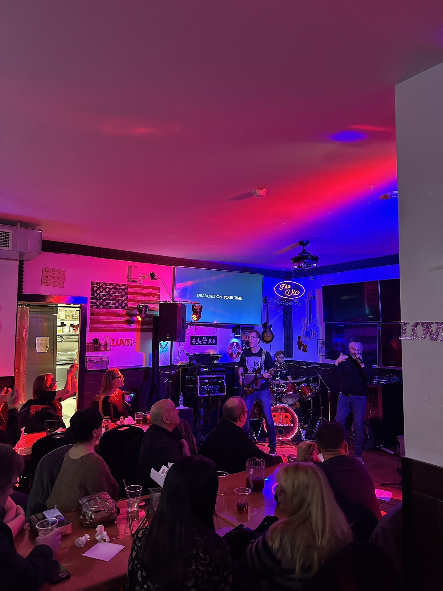 I visited Vic on a Saturday evening and had a great time. There was a band called RedRox playing that evening and it was great.