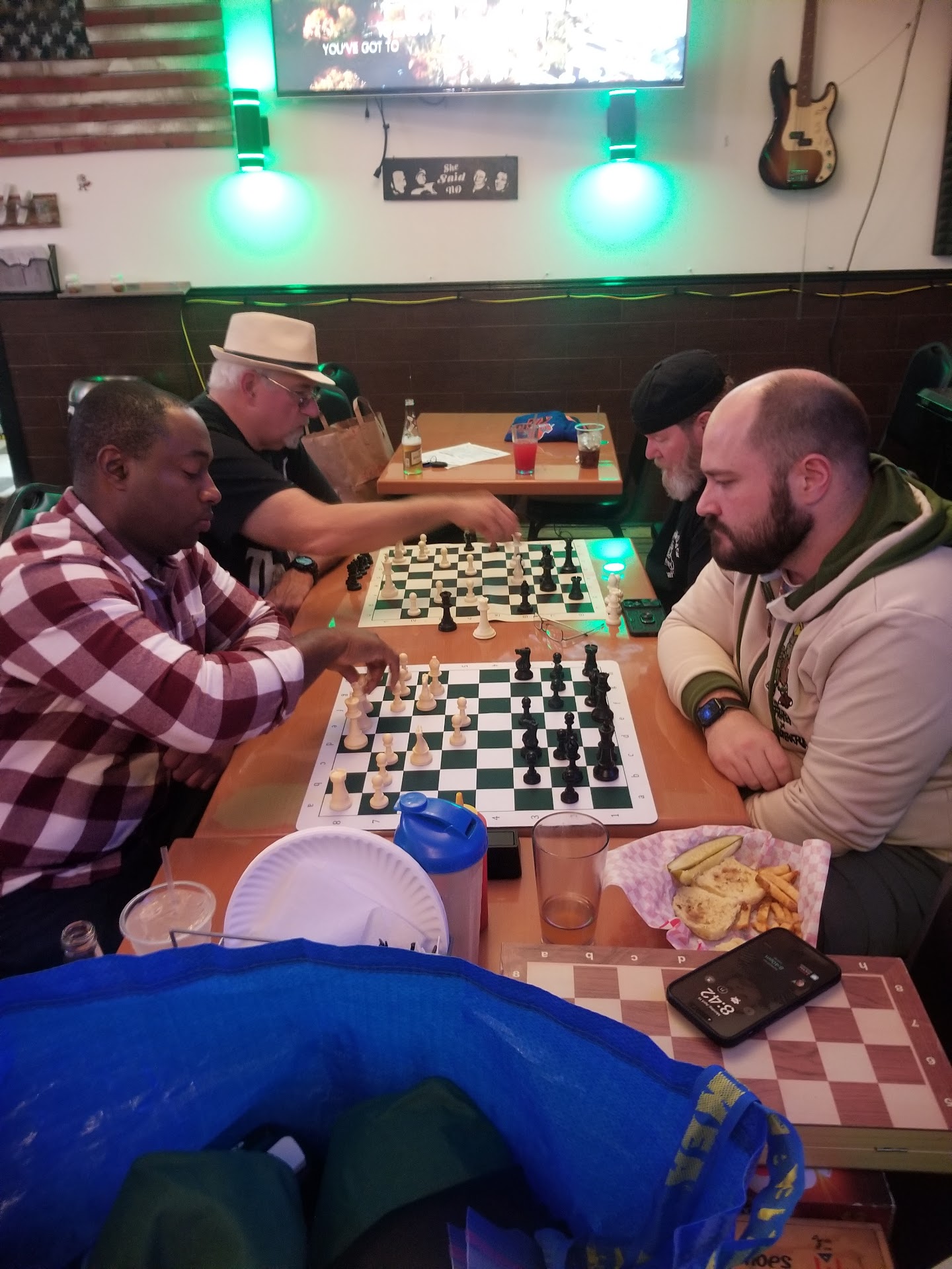 I had a cheesesteak sandwich and fries. Delicious. Prices were reasonable. People had a good time. Also had someone attend, who came to play Scrabble. There were two moms with their kids eating. Some played chess. I taught two of the kids how to play dominoes.