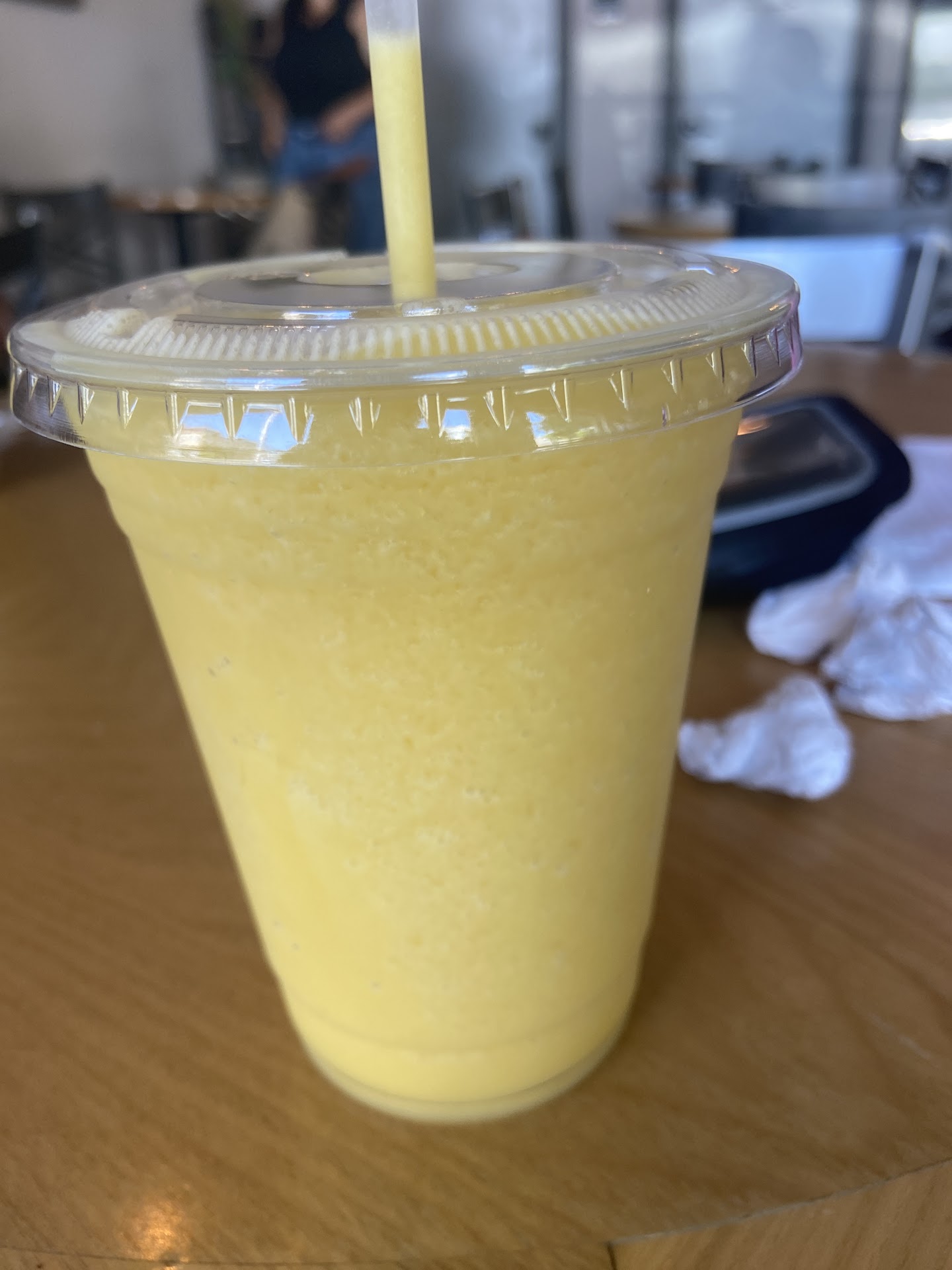 I had a peach and mango smoothie and it was very refreshing and delicious but I know it was made with sugary purĂŠes and syrups rather than real fruit.