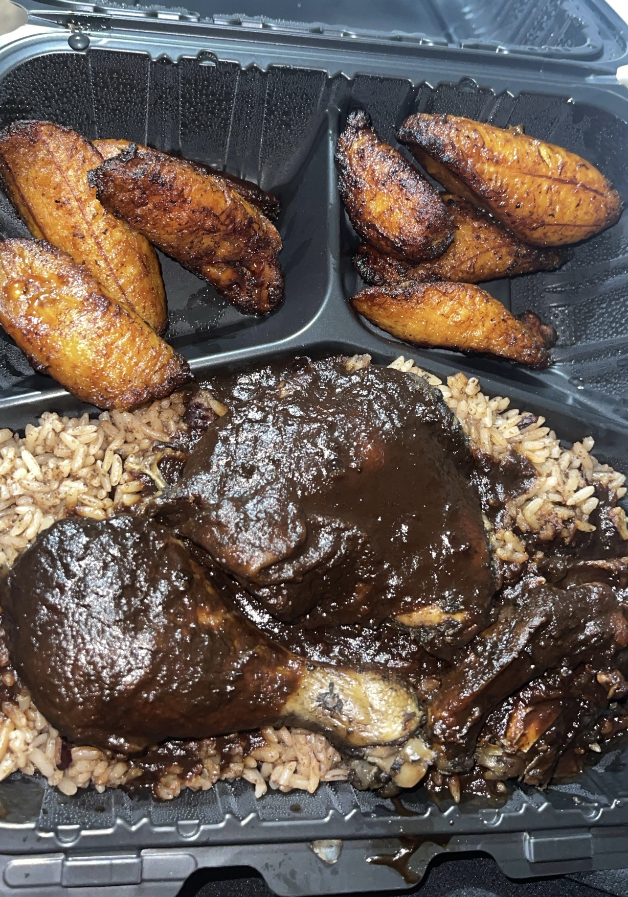 The food smelled A-Mazing, and the flavors were spot on, not too seasoned or underseasoned- just right for my taste buds, although I would have liked the jerk chicken a bit spicier. The curry chicken & rice and peas were my favorite out of this dish!! chefs kiss ๐ค๐ฝ
