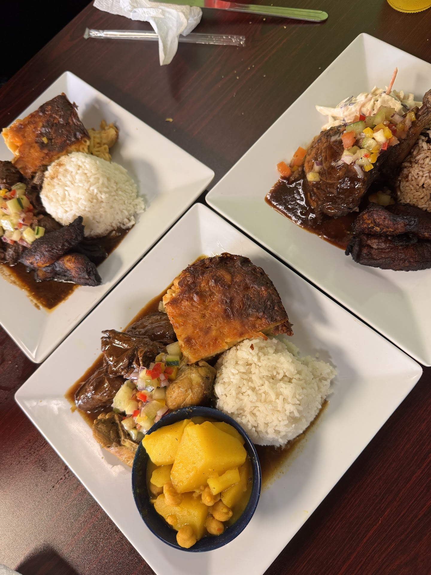 ย ย ย Read moreMy wife and I ate there yesterday after a football game. We were really hungry and saw it was close and we decided to give it a try. I got the jerk chicken plate my wife had the goat. The chicken was very tender falling off the bone, but it was only seasoned on top and it wasn't grilled nor smoked. It lacked that real carribean flavor. It tasted like baked chicken with jerk sauce on top. My wife goat again, very tender but it lacked that umph that makes carribean food stand out. I had the cabbage which was mushy a d lacked flavor same for the rice and peas. We had the cake like mac and cheese which again lack flavor. To be clear, the food doesn't need salt, just flavor. Staff was cool. Place was clean, etc but they need to pay attention to the detail. People who eat carribean food knows...