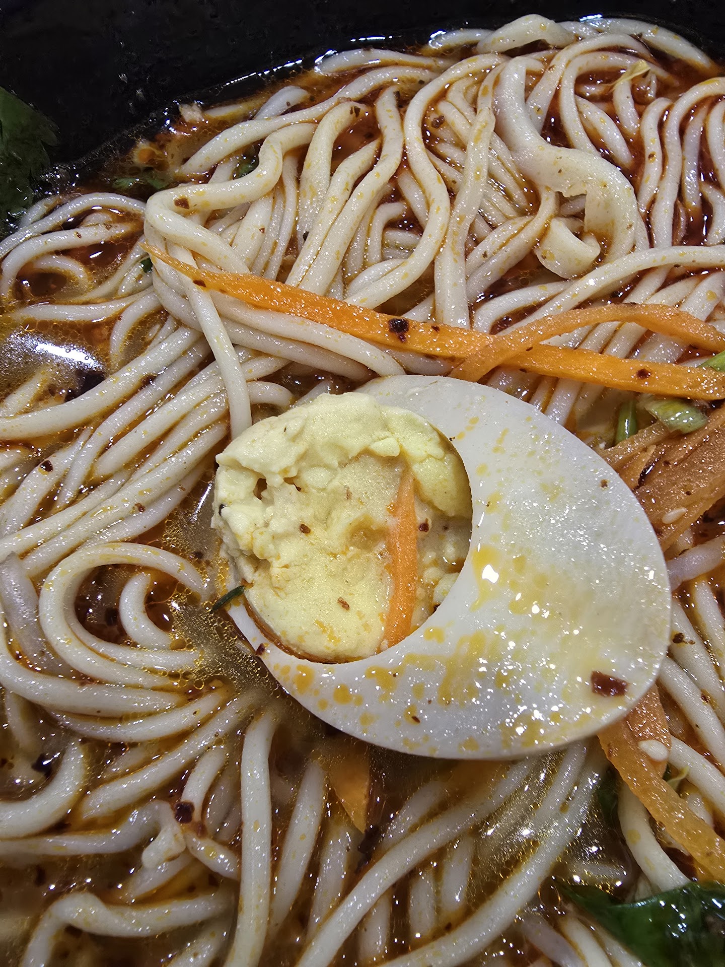 My noodles in my ramen were under cooked I guess, they were very firm. They tasted like box spaghetti noodles, the texture threw me off. (I saw the chef pulling fresh dough, maybe the bao is better?) and the pork and egg were over cooked. Idk how that happens but even the broth was bland and instead of an actual spoon or an asian soup spoon they give you a little laddle 🤣
