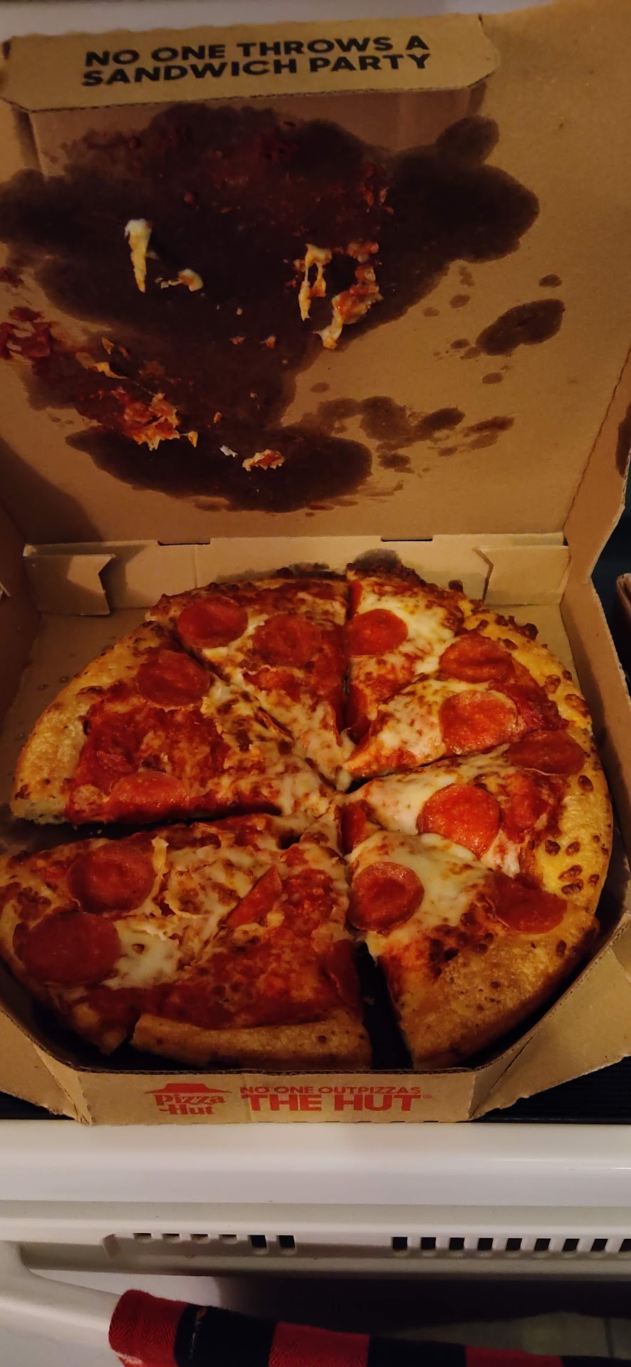 Read moreOrdered online at 5:09 and had a time of pickup at 5:26. When arriving at 5:30 I asked if order was ready to witch I was told yes so I paid. I waited until 6:10 and didn't receive all of my order and it was wrong. I got wrong pizza crust, I orded the new bacon crust to try. Also had to remind the casher that was holding a itemized ticket to get my 2 litter dp and garlic sauce. This was all during my dinner break for work. I'm late to my next two appointments trying to get a simple order on my schedule. Please to the pizza hut employees at this location take advantage of your technology and stop closing tickets until the customer received their order. It only trows off estimated times for complete orders by closing orders that...