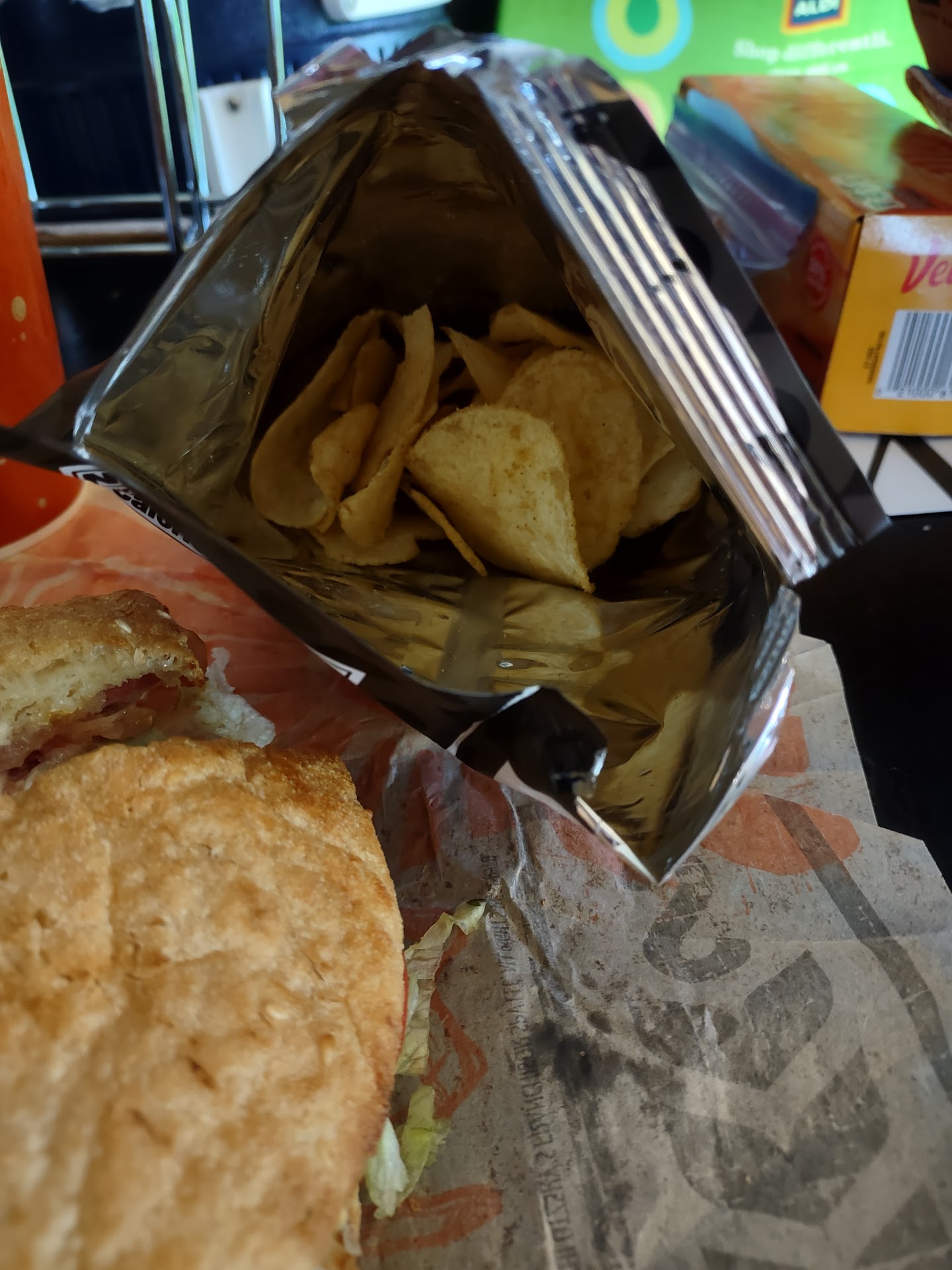 The only other thing I was disappointed with was when I got home and opened the bag, the smell of cigarette smoke was overwhelming. The sandwich tasted great as usual, once I pulled it out of that wrapper, which reeked of cigarette smoke. I'm allergic to cigarette smoke, so it made me start coughing. That's never fun. Other than that, the turkey bacon club was delicious, the tea was excellent and the jalapeno chips were awesome! 👍👍