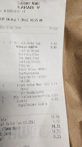 Ā Ā Ā Read moreDealt with Dianna according to her the Asst. Mgr. Explained my online order was completely wrong. I explained and she read receipt outloud and confirmed her mistakes. Asked for new order or refund which she got upset and said she couldn't help me and hung up on me. I proceeded to call back and 2nd employee by the name Gustavo answered saying their receipts don't explain what a customer wants on sandwich. That we have to indicate it on the instructions. I buy subways at least 3/wk to know what I pay and how things work. Poor service. And customer service from an Asstant Manager even worse representation of Subway. I'm in management and really appalled at how this situation...