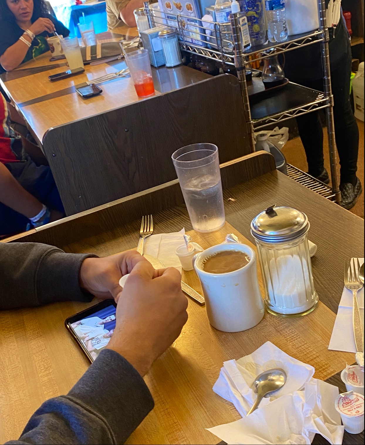 Read moreWaffle House is my favorite restaurant and it's a bummer we don't have any in California. My second favorite job ever was 3rd shift cook at a Waffle House in SE Texas. This particular location was the traditional layout, high counter, low counter and booths along left of high counter and along exterior of street side windows. Grill and cook in full view of everyone, setup plates the original method, never viewed a single ticket, all audible. Waitstaff were quick to greet, take drink orders, (food order too since we knew what we wanted) and bring drinks along with preserve items(steak knives, sauces). Called orders out from traditional call points, one even helped setup plates on the line when there was a brief rush of orders called. Cook flipped all egg orders by hand as per policy, no utensils touched any egg pan and orders came out quickly. Order was up within 8 minutes even with heavy meats (steaks med rare) and everything was EXACTLY as desired, perfect on steak cooking, eggs over medium, toast grilled wheat, hash browns ringed but covered. Coffee was hot and fresh and got freshened/topped up 4 times during my meal. Waitress pre-bussed and checked to make sure all was satisfactory too. All this during probably the busiest time (near end of 1st shift while receiving weekly truck shipment and restocking, waitstaff handling side work as well)kudos to all the staff. Y'all did it the...