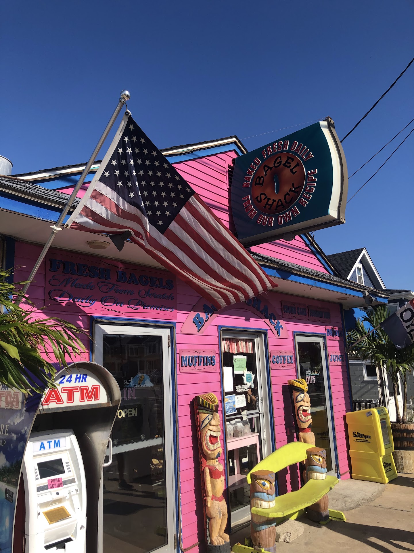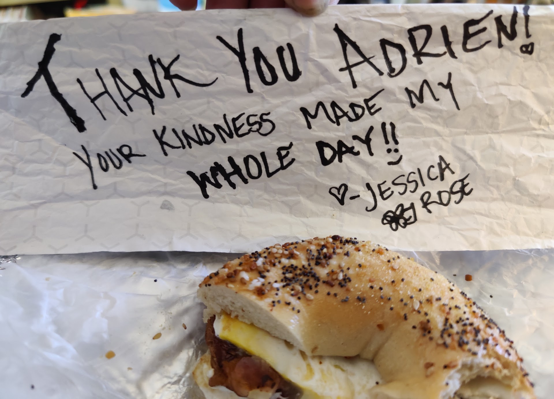 Thank the gods that Bagel Shack was the only bagel place open this morning (May 1st) This was my first time here and my experience today made me a lifelong customer. I had initially wanted to leave a several dollar electronic tip, but my debit card wasn't "working" so I checked my banking app and sure enough my balance was only $9 and change 😬 The coffee was already poured, the bacon, egg, and cheese on an everything bagel was already made and I was sweating bullets... How do I pay if my balance is too low?? Adrien the counter attendant came to the rescue without being asked, re-rang my order, only charging me $4.79 and lo! I was able to pay and still give a modest tip! I don't expect that to happen every day, but I was so humbled by the generosity of this young man. I sat right outside, ate half and was so blown away by how good the food was too 😳 I went right back inside to tell them how much I enjoyed my food and walked out to hop on my bike and go about my day, thinking about how I could pay it forward 🙂 A minute later, Adrien (I really hope I'm spelling your name right) came out to gift me with a free everything bagel! Who does that? Bagel...