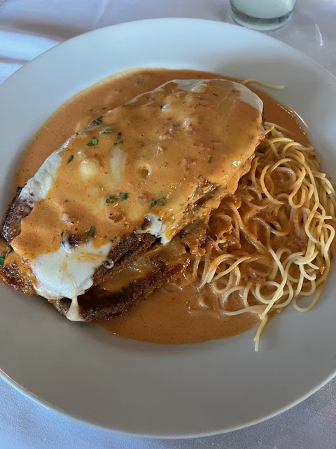 The food that we received was meh. The shrimp parm was swimming in sauce. The sauce for the chicken parm tasted like it came out of a can that you would find in the supermarket.