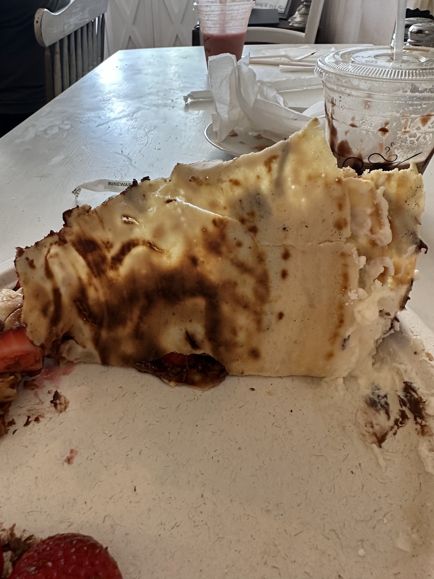 Read moreI almost forgot to write a review but came back to do it because my experience was so bad. We stopped here for breakfast on a Sunday and waited almost an hour for our food after ordering. We watched other orders for customers who ordered after us get prepared before ours, and we watched the employees move our ticket to the back after each new order. When the crepes finally came out, my crepe was so over cooked it was like a tortilla chip. As you can see in the photo, it was so burnt it could stand up on its side. Incredibly disappointing after waiting an hour for food and the crepe was not cheap. The only reason this place deserves two stars instead of one is because they remade my crepe and the new crepe was pretty good. However, on the whole, this was...