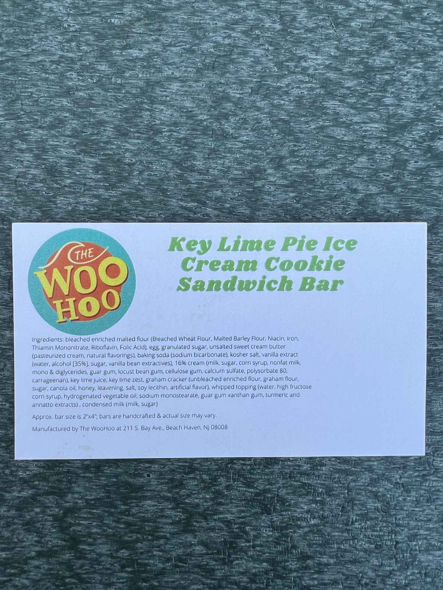 Read moreI visited LBI Labor Day weekend and was really looking forward to this place after hearing they make homemade ice cream and more natural. So I thought it would be a safer choice. Unfortunately, I was mistaken. I asked about their ice cream sandwiches and what kind of cookie was used for the key lime pie sandwich and was told it was chocolate chip. Not what I expected (I thought they would pair it with a graham cracker cookie), but I was ok with it since I like chocolate chip. The girl at the register handed me the ice cream sandwich which was completely wrapped/packaged. It was hard to open and it would have been nice if she offered to cut it open since I was eating it there. I was extremely disappointed with the taste and quality. The cookie tasted like a vanilla sugar cookie, not chocolate chip like the girl at the register told me, and it was raw. It might have been baked about a quarter of the time it should have been. I normally like cookie dough, but this didnât even taste good. The ice cream didnât taste good either. The picture of the card is what was packaged with the ice cream sandwich. They didnât separate the ingredients of the cookie from the ice cream, but either way the ingredients were not good and I was disappointed with a place that seems to promote âhome madeâ, âfreshâ, and gives the impression of natural ingredients. It doesnât seem any different from getting the cheapest ice cream at a big grocery store or gas station. I hope...