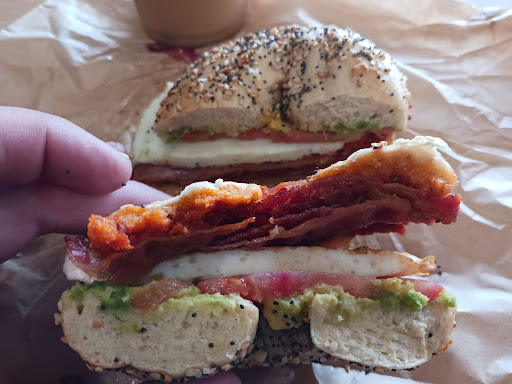 but, I am writing my review to support the stellar staff. While I was waiting for my bagel, a man came in and ordered a smoked salmon Bagel, one of the staffers walked up to help him. He was obnoxious and belligerent, and attacked the staffer for wearing a mask, and claimed he couldn't hear her. She was perfectly audible. He kept attacking her for wearing a mask, and told her to take it off. She refused, and continue to offer him service, even though he was so obnoxious. I spoke up and supported the staffer, but the guy was obviously not going to listen to anyone, because he was too busy attacking someone for their choice to protect their and their loved ones' health.