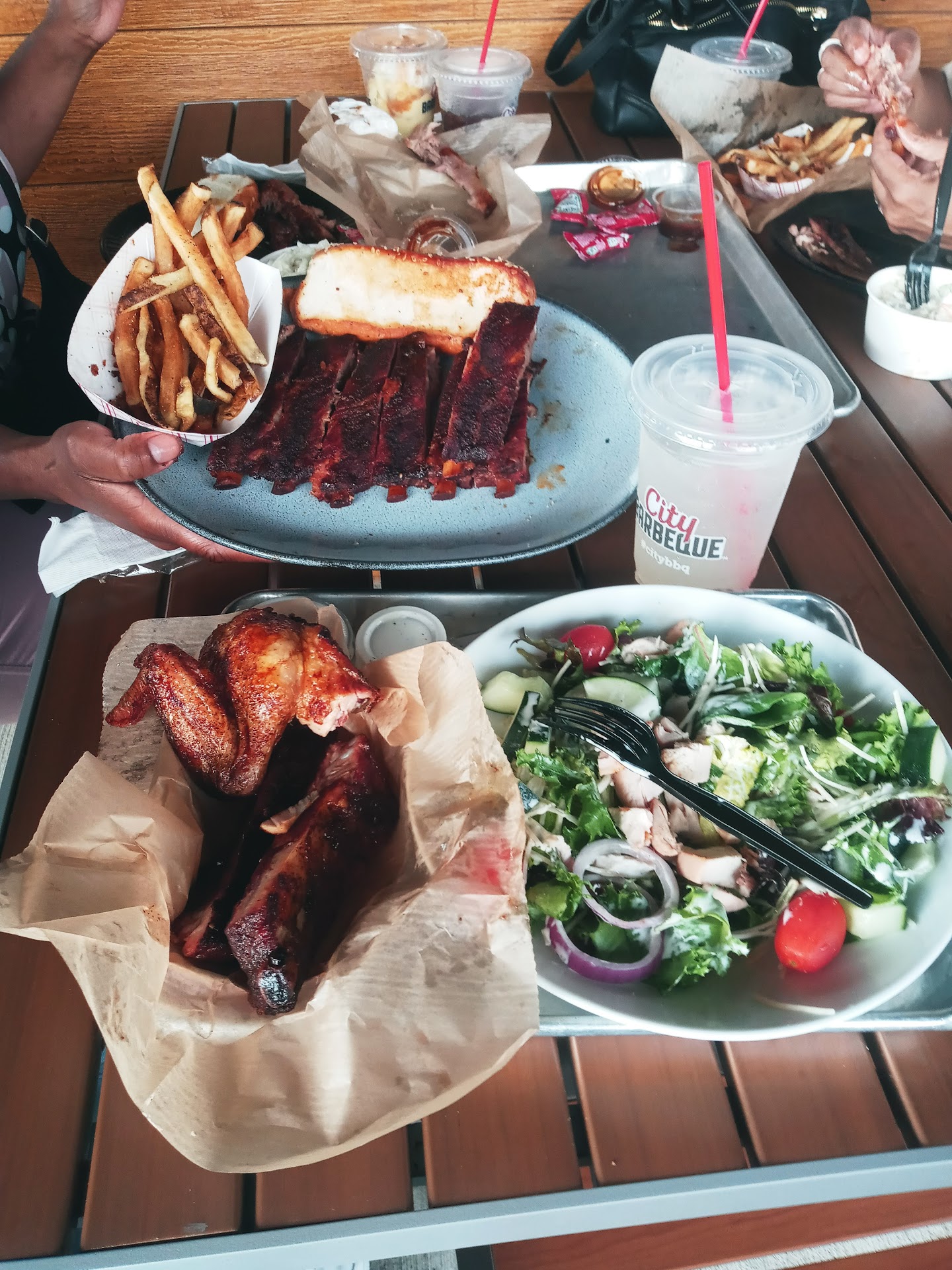 Read moreOrdered curbside pick up. That is a joke, had to go inside to pick up. When inside, there was no order to checking on or out customers. In fact, I was picking up a curbside order. I went in after realizing they were not going to Bring my food out. I go in, no one has any urgency or interest in customer service. I stand at the pick up window, only to be ignored for two people ordering. Since I am being ignored, like I am invisible , I go to the order line. All this time I cannot even get eye contact from the "employees". As i I stand there waiting for someone to ask, are you picking up or ordering? Nothing, crickets, remember they don't see me, 6 foot 1 inch 240 pounds! They Don't see me. Yet, they see three white men that came in after me, all greeted with, can I help you or are you picking up an online order? They were served. However, after seeing this and their lack of wanting to serve me, I say I'm picking up an order for Bedingfield, the guy, hands me a bag, without ever acknowledging me. Really! I fellow black gut. I am utterly astonished. I leave and take my order home, only to find as you would suspect, my order is wrong, did not get items ordered, and thus is after they said they have no collard greens.i had to substitute. I understand many places are short handed, but this was not the case. They just did not care about basic customer service. The food was cold, plus the hush puppies tasted like old oil. The ribs were cold, really man!!!!!! This was not late at night, we talking 545 on Sunday. I should have known by the lack of customers on a Sunday, dinner time n no one, was ordering. Buy at your own risk. If I get City bar b q again it will not be from this location. Don't waste your time, unless u like spending top dollar...