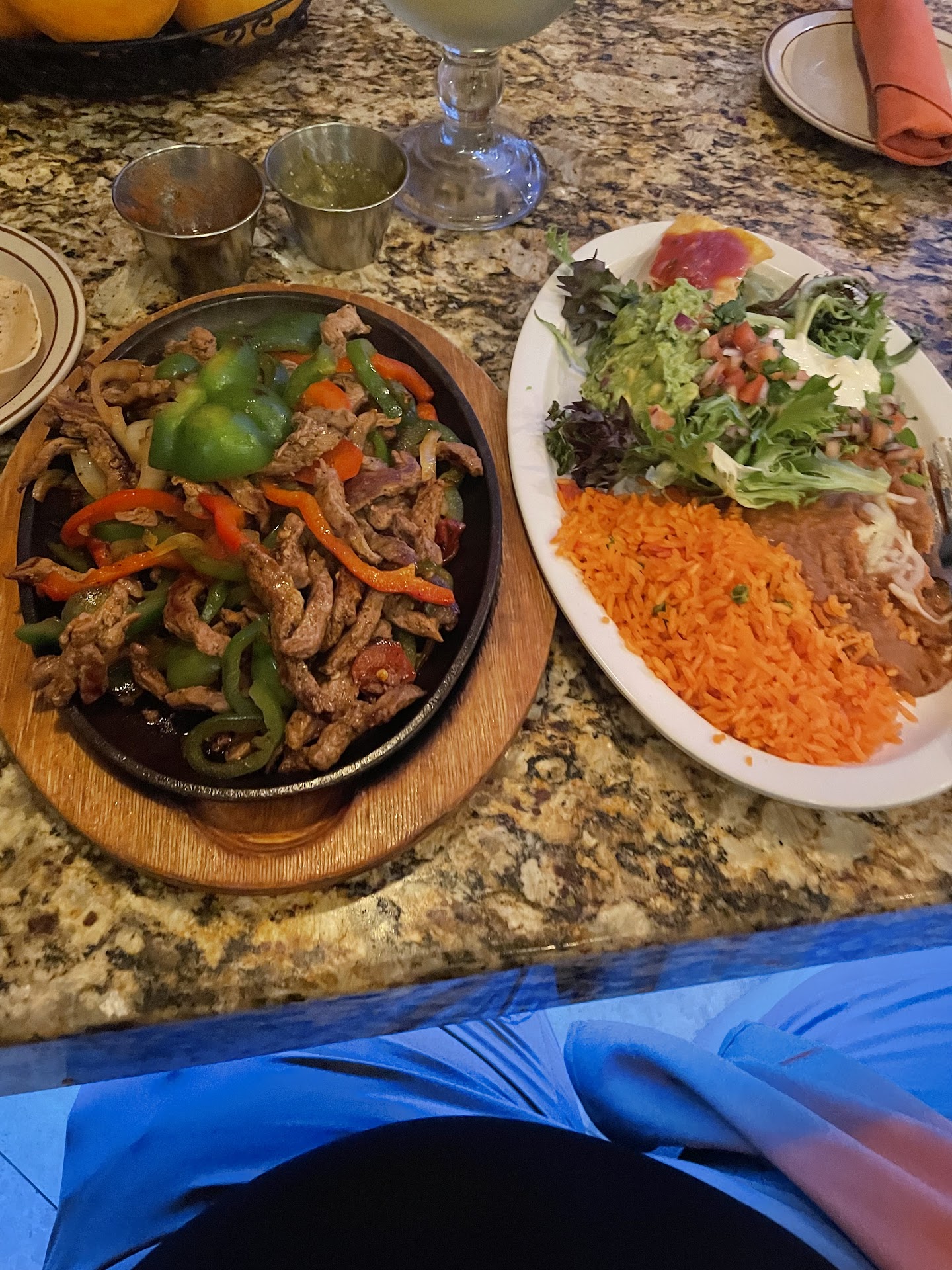 The portion is super generous. However I believe they give such a generous portion because they use cheap roast quality cuts with meat tenderizer. I would happily pay the same price for a smaller portion but have angus inside skirt steak instead of⌠whatever they make the fajitas out of. The meat is pre sliced into thin strips & you can taste the sweet chemical tenderizer. Itâs just not fatty or juicy. Very dry fajita steak. On the positive they use red bell peppers. There was 100 strips of bell pepper but like 10 slivers of onion.