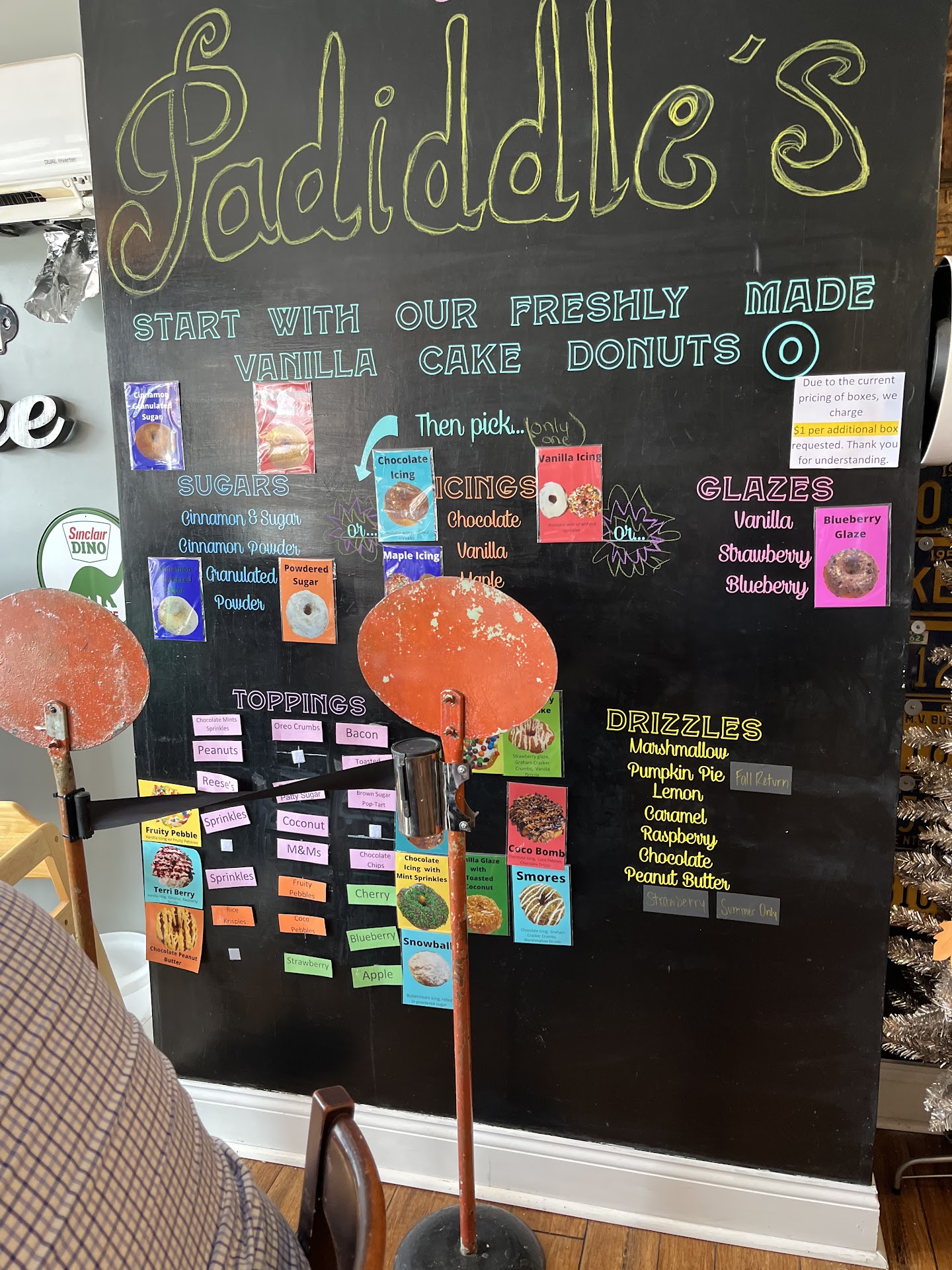 We arrived right as the owner was opening up shop. She was quick with a warm greeting and welcomed us into her quaint and cozy shop. We ordered a variety of two dozen doughnuts, a coffee and a chai tea. Since we had some time to spare we sat and chatted while she hand made fresh, warm doughnuts for the day’s customers. Upon arriving at our destination the doughnuts were quickly devoured and complimented to no end.