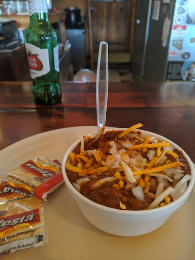 We drove all the way from Pahrump WITH today's gas prices, to try the chili at Happy Burro. We arrived to find the place packed inside and out. There isn't much seating inside, but people were jammed in. There's more seating outside, some shaded, some not. We were greeted by the cutest little purple-haired waitress who let us know that she was there by herself, so please be patient. She gave us menus and waved us outside. She quickly came and took our orders, a Frito boat and a chili dog, a glass of merlot, a ginger ale. The ginger ale was canned Seagram's with a bar cup of ice. My bf said that the merlot tasted like it had been opened and left on the counter for three days, so he sat there and got extra tipsy! The Frito boat (his order) was just a smallish bowl of chili with some Fritos on top. My chili dog was a great Hebrew National with onions and cheese on top, with probably the same amount of chili that he got, and it came with a bag of yellow Lay's. (Who doesn't love yellow Lay's?) And I have to say.... It probably was the best darn chili I've ever had. We definitely were not disappointed, except my bf was pouty that I had so much chili and kept stealing his Fritos to dip in mine! But, as mentioned before, he was getting extra tipsy on the double-fermented wine, so his complaints actually were nominal. I kept shoving bites of my chili dog in his mouth. I do wish there had been some yellow mustard to go on it, though. The local people around us were highly entertaining, rambunctious, and fun. At one point, someone brought water guns (it was something like 106°). We finished eating and headed out to explore the rest of the town (there's a ghost town nearby, and Spicer Ranch...). We want to come back to camp, and we'll definitely be back to the Happy Burro! If you go, tip the waitress well!...