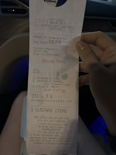 Bland but acceptable bacon double burger. The same shameful, garbage, tasteless, "beerbattered" onion rings that every place serves because they are all dumb. These companies ALL need to go eat at a Red Robin and learn what REAL onion rings look and taste like!!! Why in world are you serving 100 year old bland, tasteless, boring crinkle cut fries? What are we 5 years old? Cheese curds are a yummy new addition to fast food lately, but with yellow cheddar? No lol. That's like putting yellow cheddar in a jalapeño popper, when it should only be cream cheese. Just stop it people, eww. We have a Cookout 100 yards away with good white cheddar cheese curds done right. This Culvers place also serves some fried "seafood". Seafood from a fast food place, are you kidding me? No I did not order any of that nonsense lol. Overall the prices seem moderate considering today's insane inflation scam, which is acceptable. I did not try the frozen custard, or the chicken yet, maybe one of those will be noteworthy, but doubtful. Overall if you need food and nothing else is open, sure eat here, it's "fine". Under normal circumstances, there are many better tasting choices in the same price range.