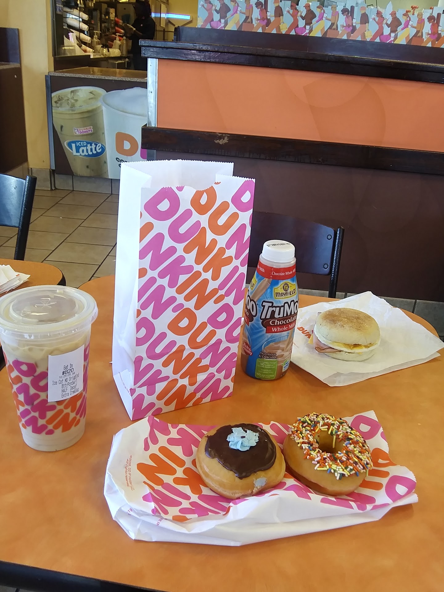 ย ย ย Read moreI have never had a "bad" experience at a Dunkin donuts. But today was disappointing. Me and my husband came in and we're the only customers. There wasn't a greeting as I would have expected. No smiles. The Girl behind the counter was fine. Didn't seem happy to be there though. Order went ok. The blond was complaining that they "haven't gotten any tips all day" as we waited. My husband's pineapple coolatta was wrong when he told her he ordered a cosmic she said oh grabbed the cup and fixed it handing him it without a word. I thought I was waiting for my cosmic cotton candy coolatta, the blond came around and sat with a guy and asked him how his life was going. I didn't hear or see the other girl making my drink. My husband said he would tell the blond but I thought she was on break and didn't want to disturb Her on her break. So I went up to the drink counter and stood.... Then I hear the blond say in her headset welcome to DD.. so she wasn't on break. Still waiting. Finally the other girl came over and I explained I didn't get my drink. She walked away without a word. However when I received my drink and thanked her she did respond with a welcome. The saving Grace was my cotton candy drink! It was amazing. I hope these girls have a better rest if there day. But I think I'll stick...