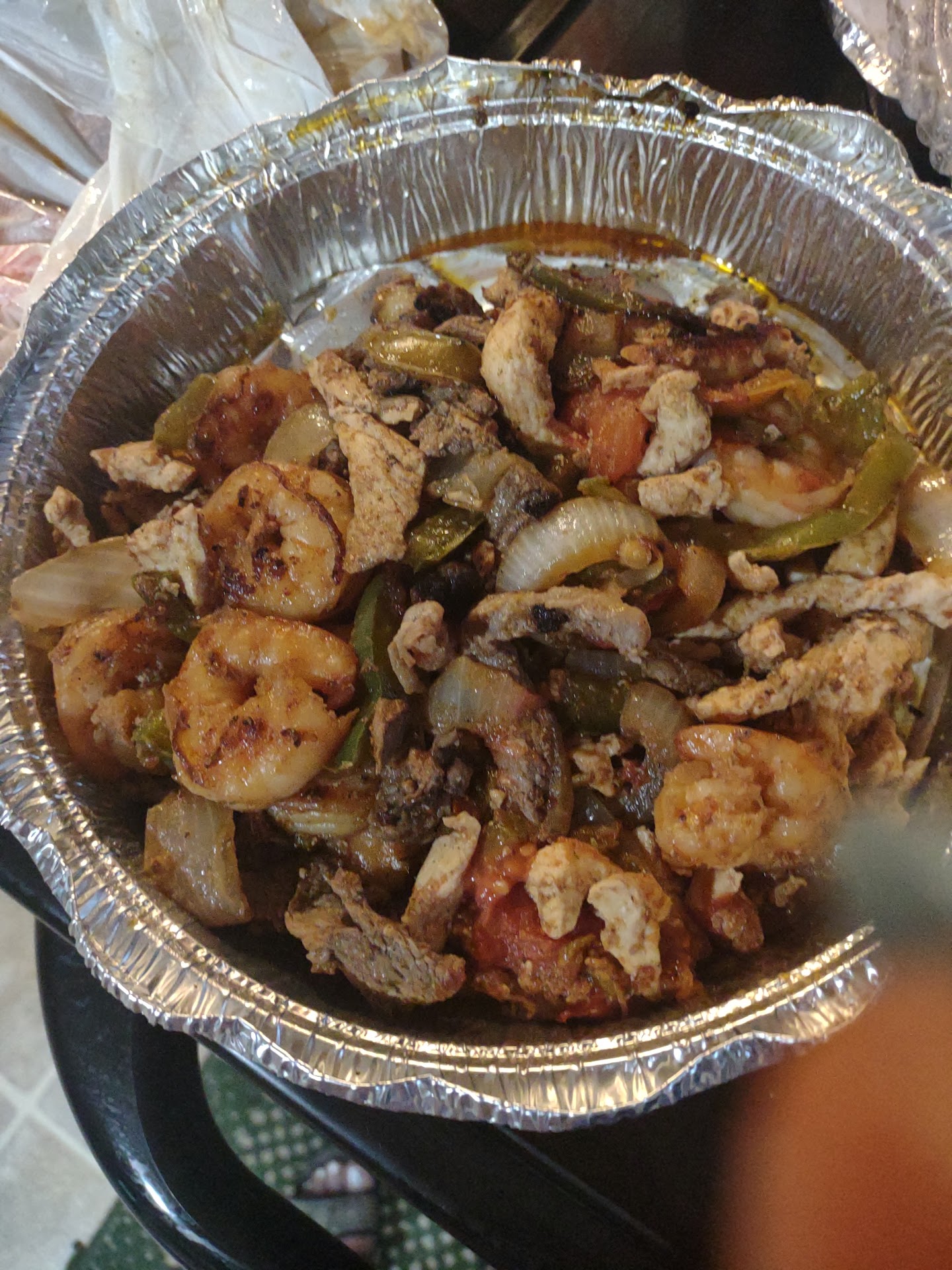 My Bisteq and Peppers which is Ribeye Steak with Pepper and Onion was nearly a cinder burnt and dry as an old sock and equal in taste I would guess. The Peppers and Onion didn't even cover a 1/5th of the so called Rib Eye aka Horse steak probably and the beans and rice weren't enough to feed a toddler. Moms Fajita Nachos might have fed a 5 year old IF he'd already just ate Thanksgiving at Grandmas house.