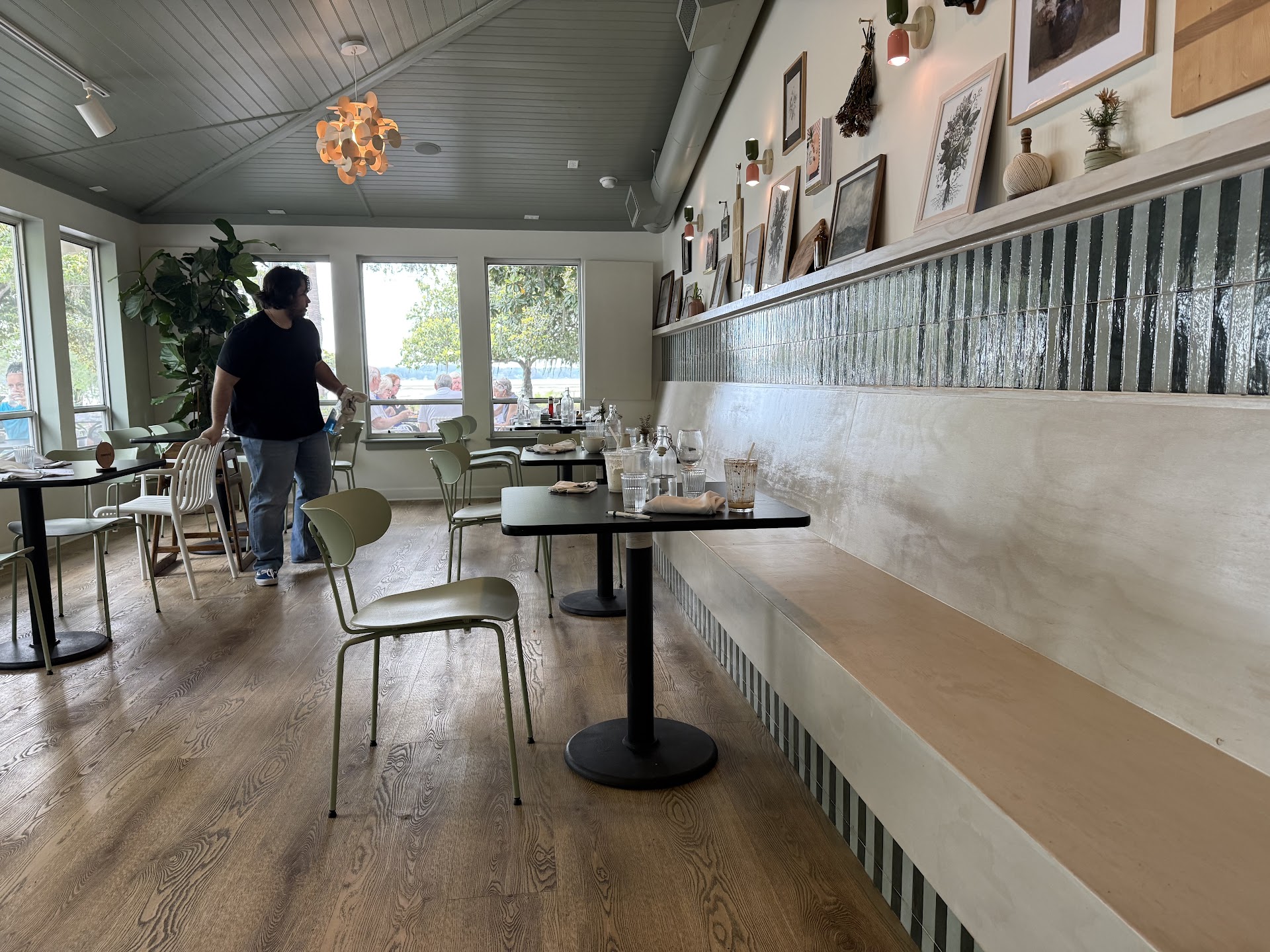 The food was absolutely abismal. I mean by far the worst breakfast food I have ever had. I ordered the breakfast sandwich on the house made English muffin with bacon. In no world could the bread this was served on be called an English muffin, and it was bad in taste and bad in texture. The eggs were overcooked, the bacon was undercooked, and the spinach had gone bad and tasted accordingly. To try to alleviate the horrible sandwich, I requested some salsa and poured it into the sandwich. It helped, but still by far the worst breakfast sandwich I’ve ever had. My partner ordered the monte cristo waffle, which similarly had very little flavor, way too much ham, and was very disappointing. To top it off, the breakfast potatoes, the most flavorful item we received, were poorly seasoned with rosemary and thyme, both wrong for breakfast service.
