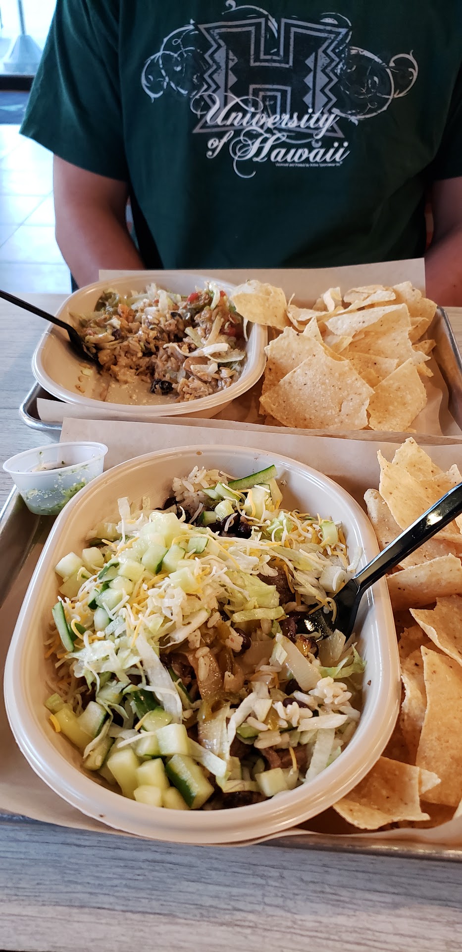 We were staying at the Quality Inn, just minutes away, and decided to stop in for dinner. Not crowded but online orders was busy. My first visit, my Marine said it's good food. I ordered with his help and the girl on the line. Wasn't sure if I made a good selection, but once I started, it was a great surprise. My steak combination was delicious. Chips and salsa came with it. Wow! If I wasn't getting ready to leave town, I would have returned for more. While sitting I noticed the workers were engaged with conversations among themselves. 1 stood mainly on the line, 2 did online orders, 1 was talking to all of them, while he cleaned tables, swept, and checked the garbage. I noticed as he wiped the tables, chairs, and the area where the trays are set on top of the garbage, he used the same towel. He spot checked all those areas. He wiped areas that had food, crumbs, liquid, etc. I was not impressed, felt it was sloppy and gross, thankfully I ate my food off the tray. He could've done better if he added a little more effort. This is a food establishment. I would have easily given a 5 star if he took a few more minutes to clean. He certainly had time to chat in between his...