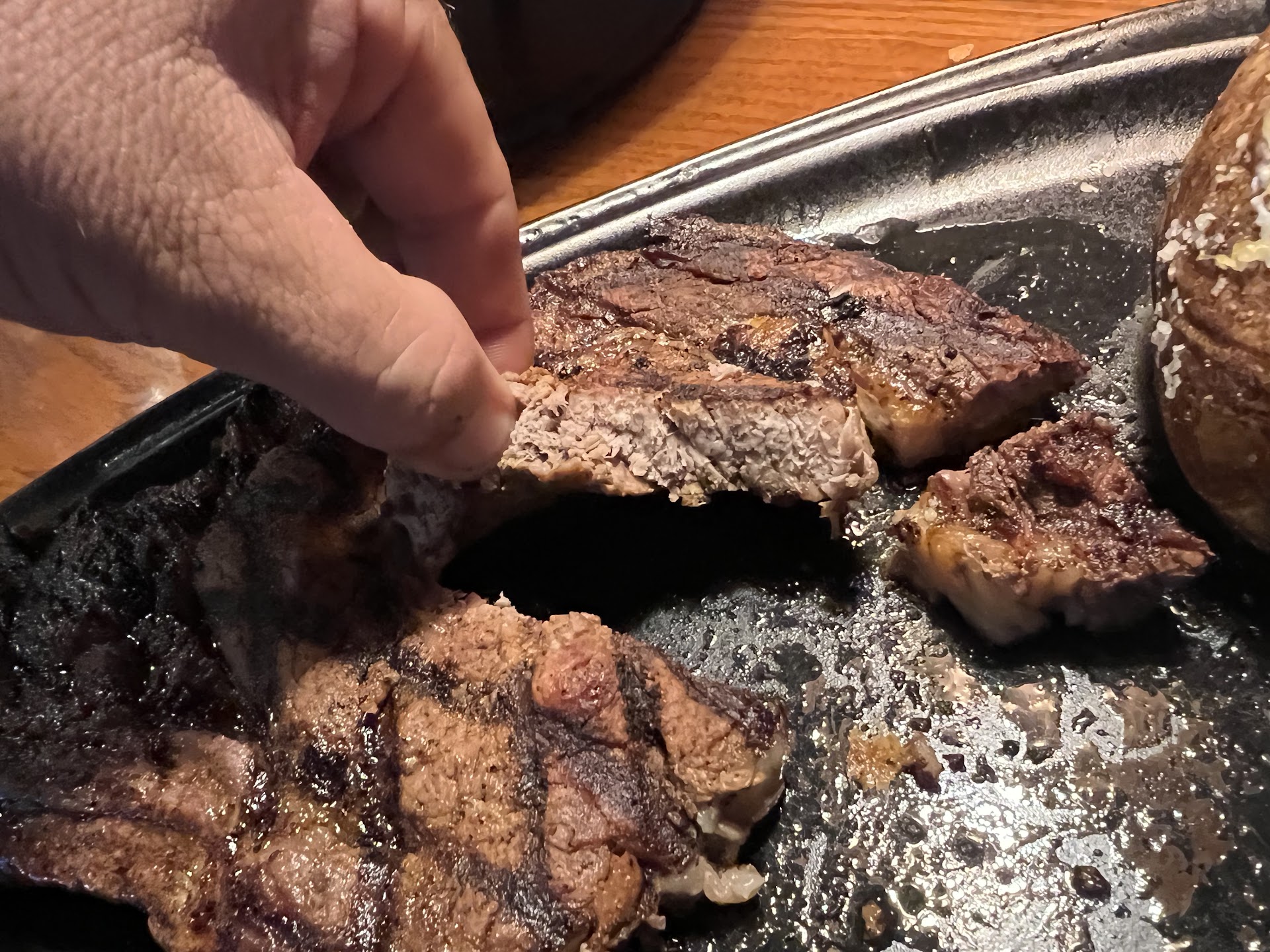 Read moreFirst, let me cover the positive. My server “John” was exceptional and the reason my rating is two stars instead of one. I know ordering steak at a restaurant is always a gamble as far as how done it will be when served. Therefore, even though medium rare is my choice, I pick medium with the expectation that the kitchen may be in a hurry. This way if it is over or under cooked I will get my steak somewhere close. What is never acceptable is to order medium and get well plus. My steak was as dry as the desert. To his credit, John offered to have it recooked, however, I specifically went at the slow part of the day a little after 3 pm. Yet, my steak still took 30 minutes plus. I didn’t want to wait that long or longer since the restaurant was now getting busier. Additionally, I ordered the mac’n’cheese as a side. When my food came John had to inform me that the kitchen of was out of this item and I needed to make an alternative choice. This again is a hit on the kitchen staff. No waiter/waitress is going to let a customer pick an item unavailable and wait till their order is ready to inform them their sides aren’t available. Finally, I ordered a bloomin’ onion as my appetizer. This came half raw and half burnt. The oil was obviously set to high. Bottom layer was way over cooked and the upper and inside was raw. Pulling off upper pieces revealed onion that was still raw and batter which was still mushy and not cooked. For a 50.00 dollar meal for one person, I expect better. Anyone would. Thank you John for a great effort. But, forget this restaurant if you expect quality and value...