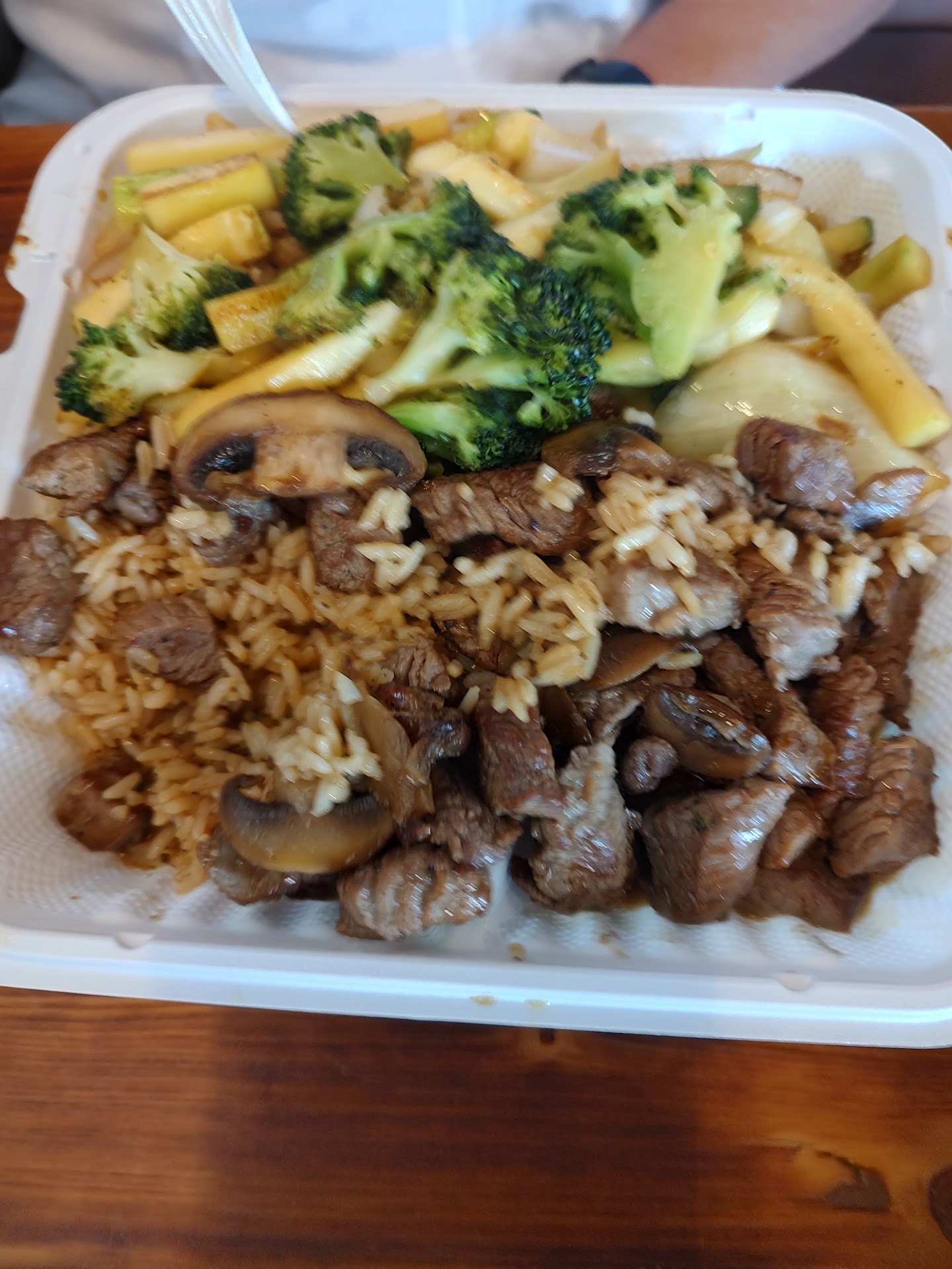 We ordered the large steak and shrimp express bowl, and it was fantastic. The express bowl is a great option if you prefer a large serving of fried rice and meat without the vegetables, which suits my taste perfectly. My partner opted for the chicken and shrimp hibachi, which included a generous portion of vegetables and was equally delicious.