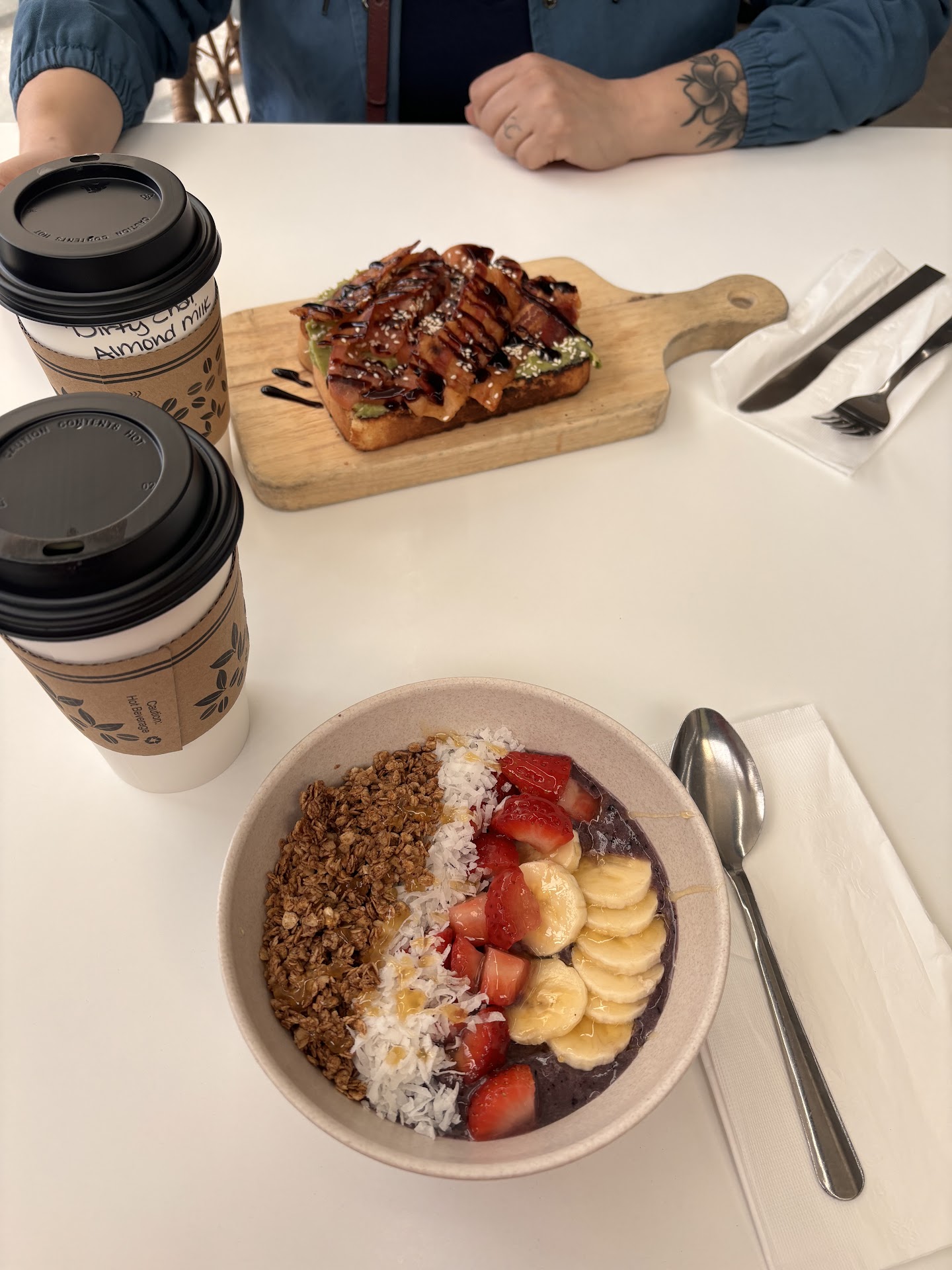 Update - had the chance to go back and actually sit and have their food as well as their delicious drinks. We had the avocado toast was…oh my gosh it was amazing. The seasoning was right, the balsamic vinegar was perfectly drizzled on top of the bacon! We also had the açaí bowl which was delicious the right amount of granola, the fruit was fresh and flavorful. I don’t care for bananas but this combination of all the flavors was so good I ate it all. If I’m ever back in Beaufort I will be back!!! Had the Match with blueberry whipped cream and it was delicious. The service was great and atmosphere was very cozy.