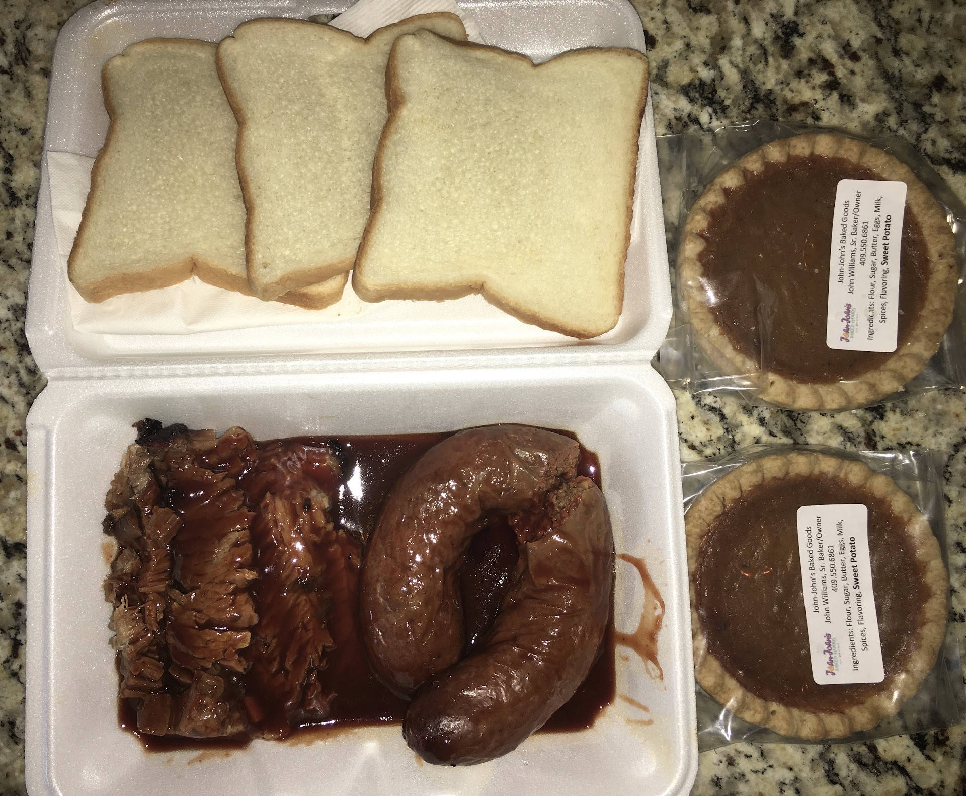 You know, BBQ is highly speculative. It's an opinionated subject. Someone once told me that "the best chili was the one like your momma made." I think that is a factor. I discovered Broussard's by accident. It's a picturesque place. There is no inside dining or service. Just walk up and order from a window. I was in Beaumont for work and on my way home back to League City. I ordered to go. Asked what they were most proud of and they replied the sausage links and pork ribs so I got some.