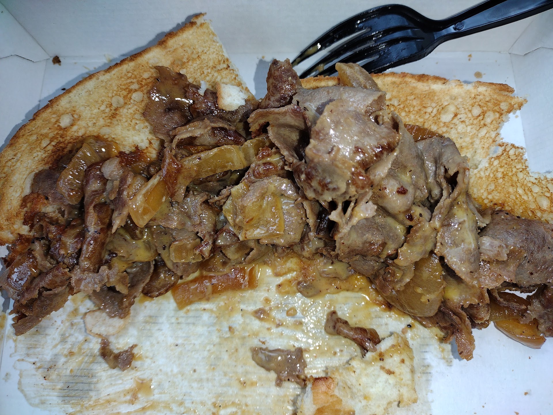 Second, in combination with the salad on the sandwich and the warm, moist steak, the included cooked ingredients, I found the sandwich unmanagable. Almost all the ingredients slipped out the hoagy roll. Good to have a knife and fork.