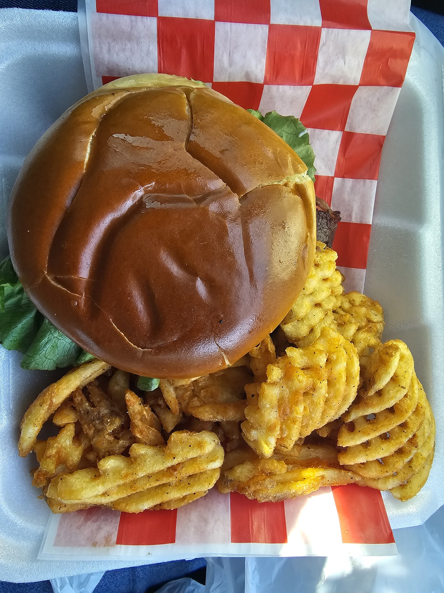 I randomly saw this on Facebook and since I was on that side of town I decided to pop in. I got the classic burger meal which is a cheeseburger. The bun was excellent, the burger itself was well cooked with nice crispy outside, albeit a bit overseasoned for my preferences (it wasn't out of line or not edible, plenty of other places in town season similarly and it looked like the season at the time so I can probably ask for lighter seasoning next time), the bun was excellent though. It also comes with waffle fries which were quite good. The one odd thing is while the meal comes with a drink, instead of fountain drinks they have canned sodas. The service was fast and friendly and while it's on the higher side for a burger meal, I think it's worth the stop if you're out there.