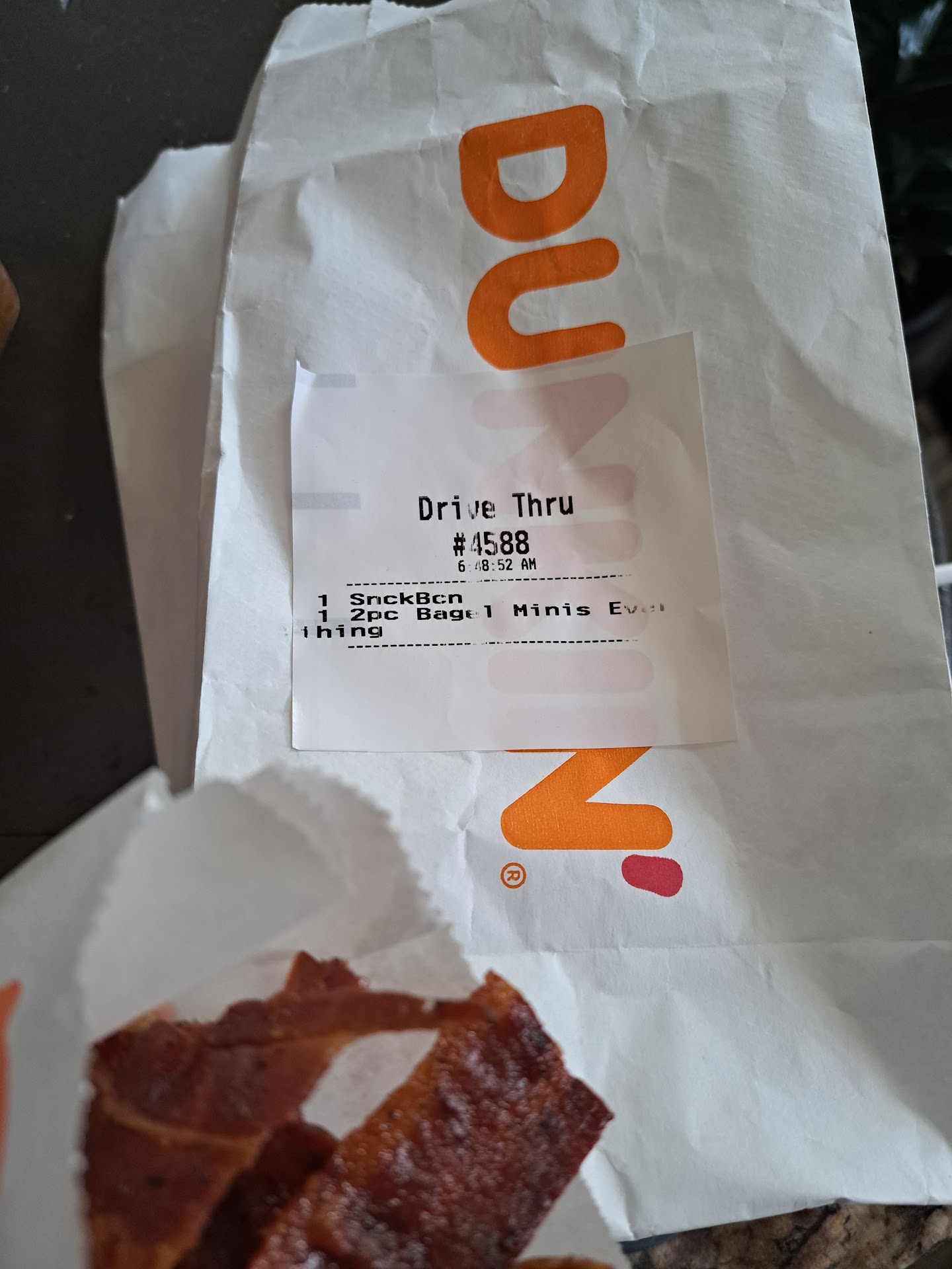 I usually get the turkey cheese breakfast sandwich but today I ordered the chicken wrap. All I can say is whomever doing Duncan's food photographer give them a triple raise. I was looking for thr red peppers and the other peppers roasted...frauded by a little pretty wrap melted chop up cheese melt. Where was the onions and peppers at? The breakfast burrito at Sonics looks and taste much better and I wish they did a chicken wrap in the mornings because I do not eat pork.