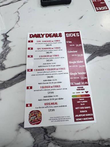 Read moreI’d take a picture of my meal, but it was so good it’s already gone! I got the tender meal and was not let down. Honestly, it reminded me of Raising Cane’s — except better. The tenders were perfectly juicy and cooked just right. I had the original flavor this time, but I’ll definitely be back to try the spicy ones. And don’t forget to order the Hot Chix signature sauce — easily one of the best fry sauces I’ve ever had.