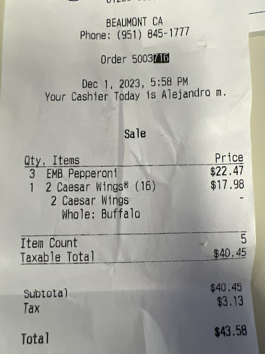 CHECK YOUR RECEIPTS! This place is committing FRAUD! They charge you for the more expensive pizza and initial it on the receipt so you donāt notice what they are doing but give you a regular pizza. Me and my family order here all the time and if I didnāt start checking my receipts they would still be getting money off of us without us knowing. The manager was very unprofessional I asked her why are you guys doing this to your customers it isnāt right this was the third time I caught it. The first time I let it slide the second time I talked to someone and he told me that is how they promote their pizzas. You donāt promote your product by charging customers for it without them knowing. As I am telling her this she goes on by telling me āthen why did you come back.ā I donāt see how that makes any sense as to why you guys are willingly charging people for something they didnāt ask for. A male Alejandro then came up to me and said he was the manager. They both tried to make it seem as if I was mad about the pizza when it had nothing to do with that. They knew what they were doing was wrong and they got caught after Iām sure doing it to every customer that walks...