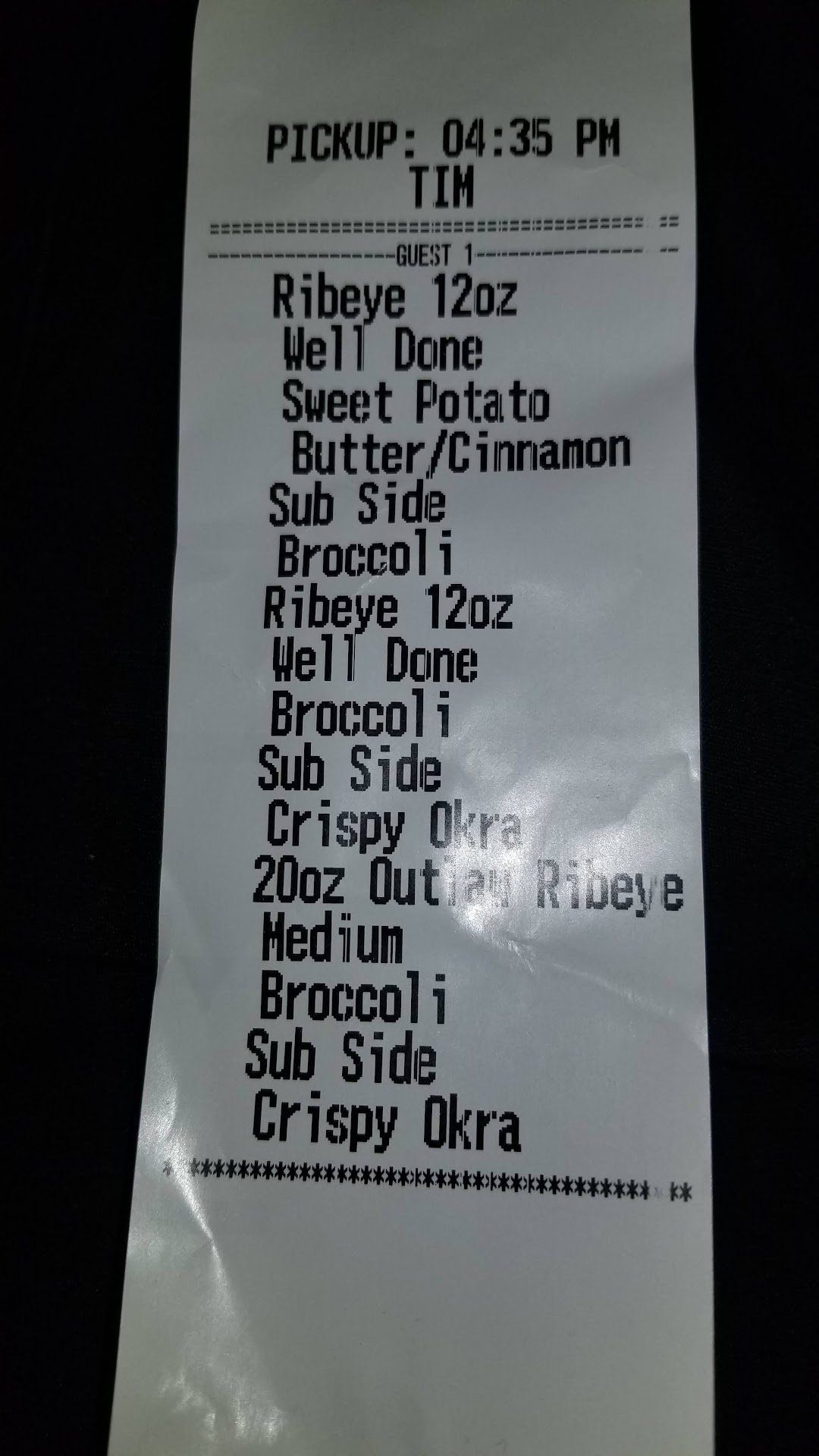 Read moreAfter the last two trips there we decided to give them one more try. We got there and there was a fifteen minute wait. No problem. Buzzer went off we went inside to be seated. Low and behold for the 3 Rd time in a row they were seating us at the back kitchen door. We told the hostess politily we would wait for the next table. She then said something smart which I then responded with an " excuse me?" Of course she stormed off and had us follow her back to the front door. They seated us at the booth across from the kitchen door. No problem. It's better than all the wait staff passing by your food 100 times. Our waitress came and took our drink order which my husband asked for lemon for his water. Which he did not get. He asked again when we ordered our food. Mind you we are ordering big. Ribeye is what I ordered with grilled mushrooms only. He ordered both onion and mushrooms with the horseradish sauce and the outlaw ribeye. Now that is$50 worth of steak. Both medium rare. Still waiting on lemon she brings us another bread. I watched at 15 times the wait staff and the hostess step over sauce spilled on the floor right in the runway. I assume it was the manager who immediatly cleaned it up when he saw it. We then get our salads. Within 3 minutes our steaks come out and my mushrooms are loaded down with onions. I tell the nice lady that brought our food that I ordered no onions. My husband still needed his lemon, we just got our salads, there is no horseradish sauce and no sweet and low on the table. She says she will go get it corrected. Then our waitress comes over and ask if our order is okay. I then tell her all the mistakes and she tells me my mushrooms only comes with onions. She offered to get what we needed but I let her know that the other nice lady was getting it. She then took off. We did get what we ordered but our steaks were rare. I don't mind rare my husband does but didn't want to try and get it corrected. Needless to say our meal including tip was $75 for the worst service and the order not correct. We will...