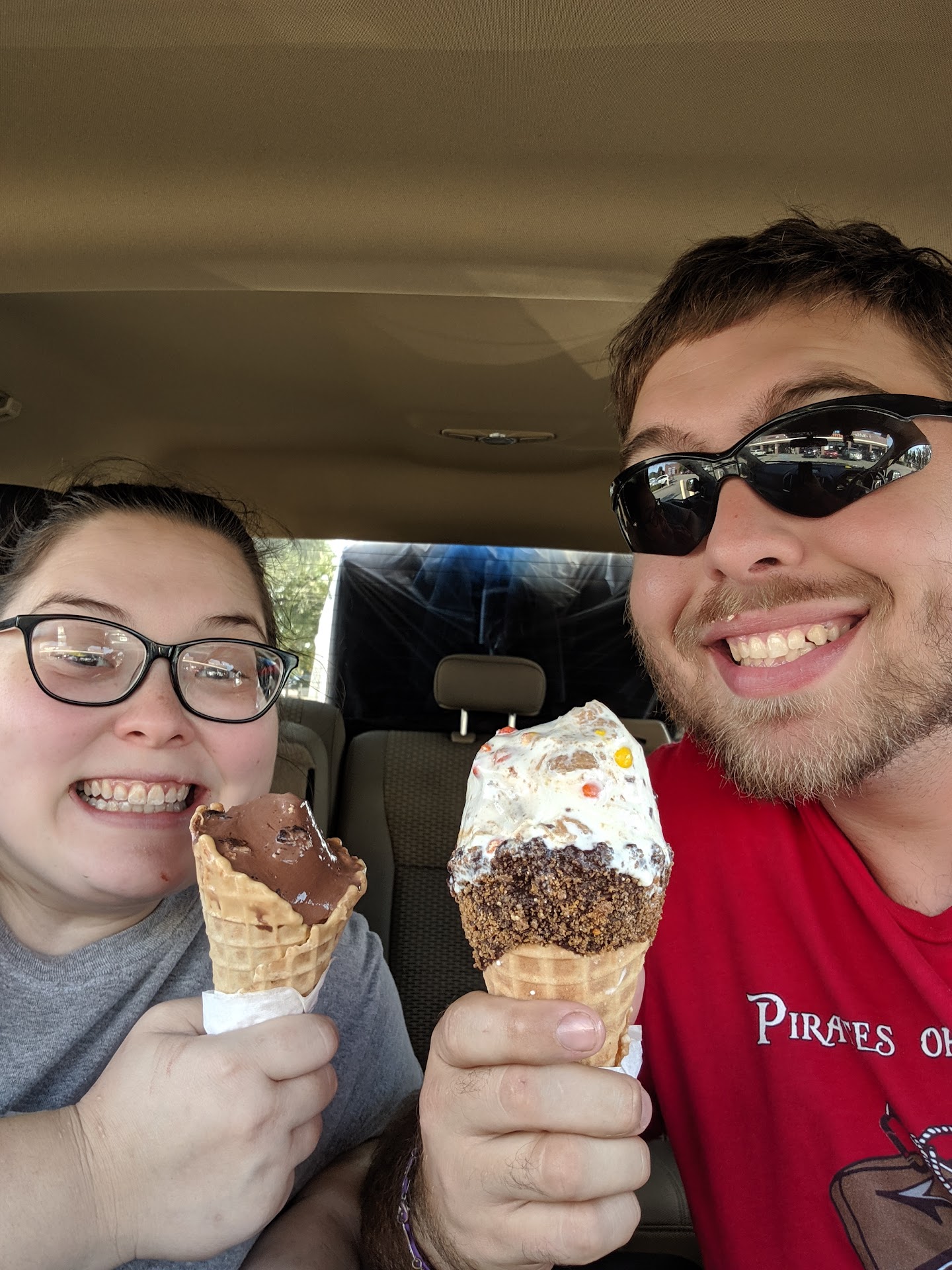 Read moreMy ice cream was okay, I got a cheesecake ice cream with a chocolate dipped cone and walnuts. I was pretty much searching for the walnuts. My daughter got a small birthday cake and she asked for sprinkles in it and she enjoyed hers. My partner got a pumpkin spice graham cracker thing they had for the season. He said his tasted too much like graham crackers and he couldn't taste the pumpkin or marshmallow. The total came out to about 25 bucks which I felt was way too expensive for two ice cream cones and a small cup for a child. All in all, it was an okay experience but it felt like the employees didn't want to be there. I most likely would not get this again, I could've gotten a whole tub of Bluebell ice cream and a box of waffle cones at the Walmart across for...