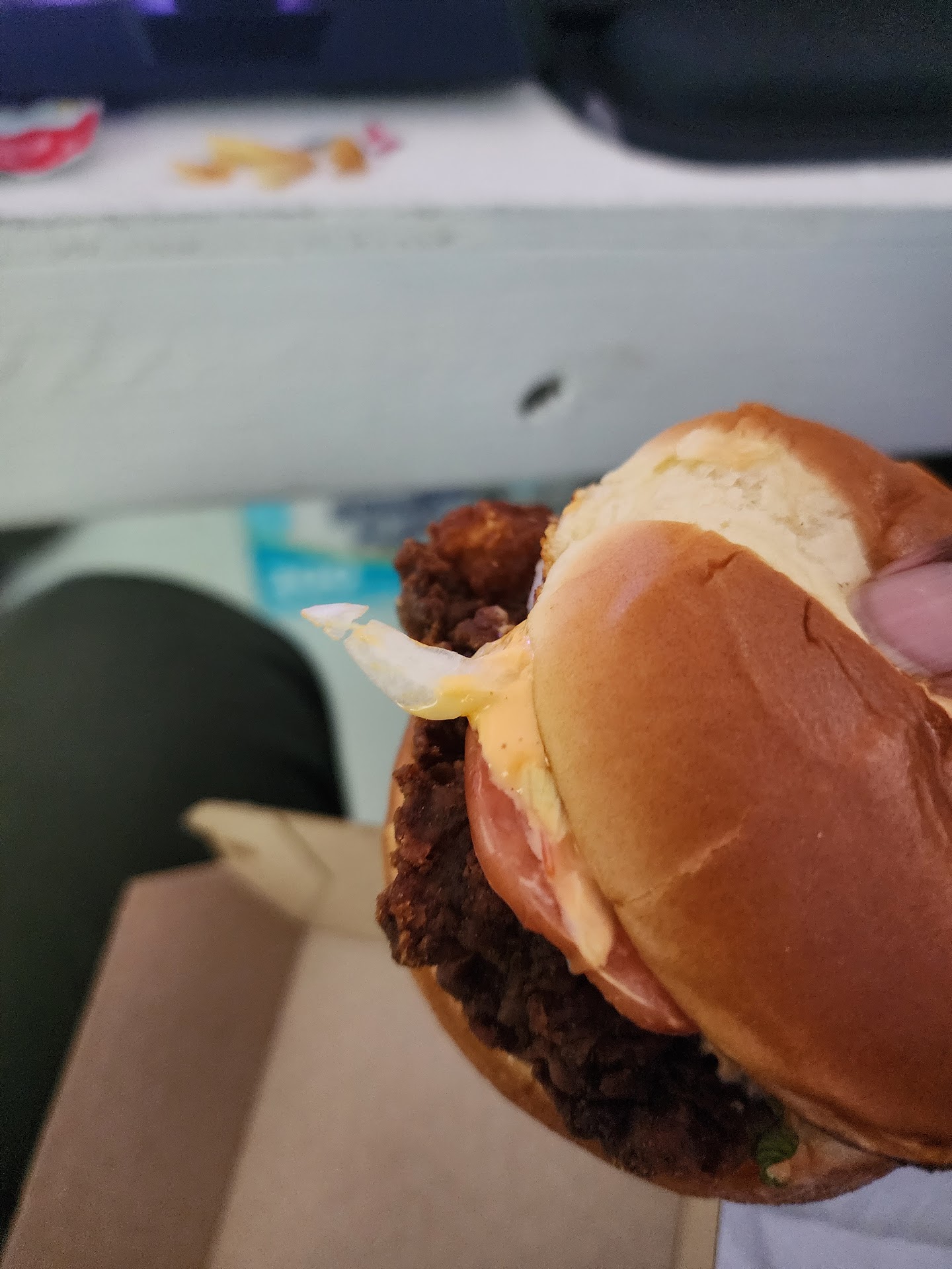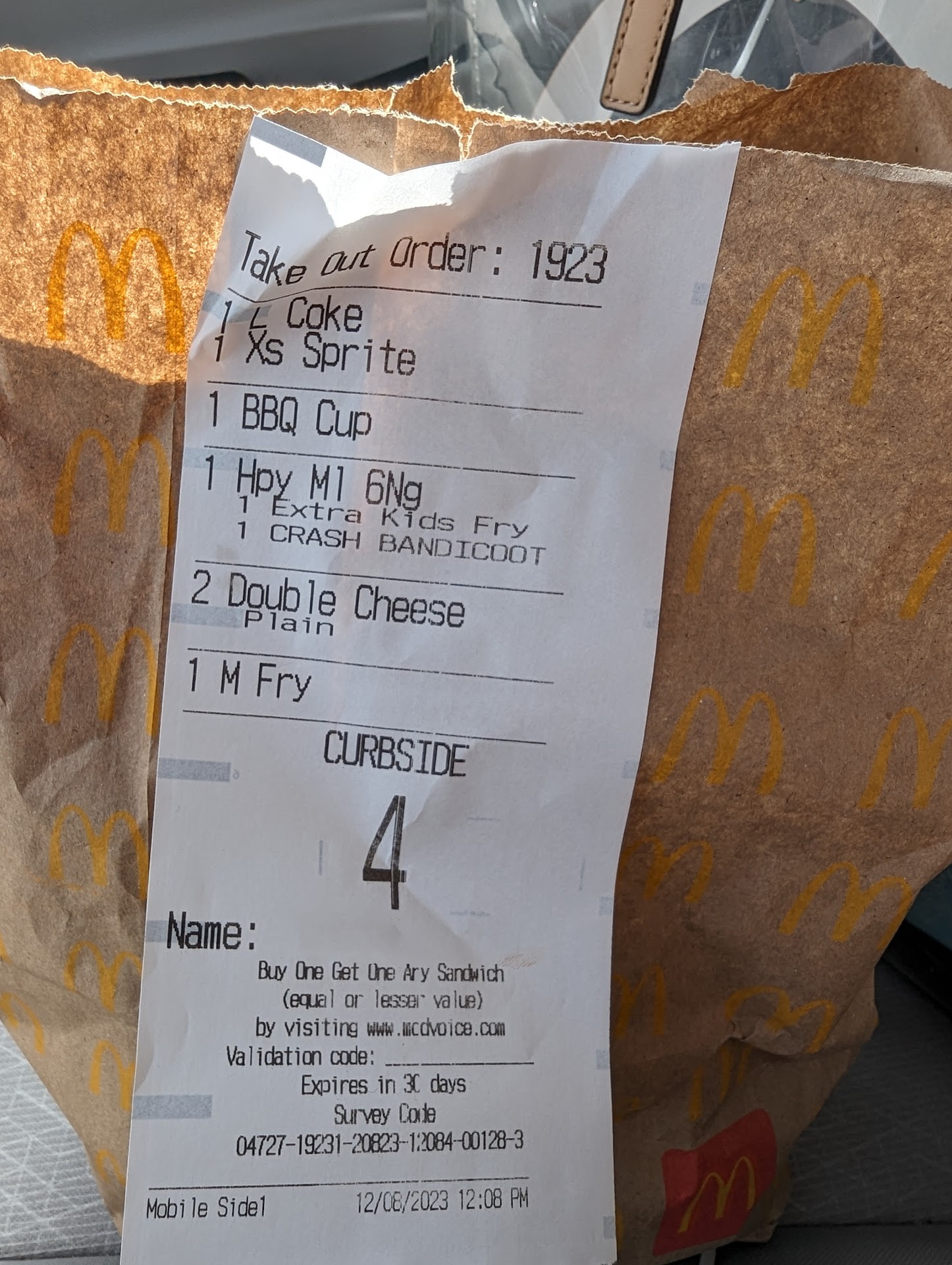 I then checked the remainder of our food and we were short a hot & spicy with cheese and my ice cream cone so I did not pull up. Then the pleasantly nice younger lady came to the window and asked us if we had both of our cookies. We checked and saw we were shirted one so she immediately gave us our cookies.