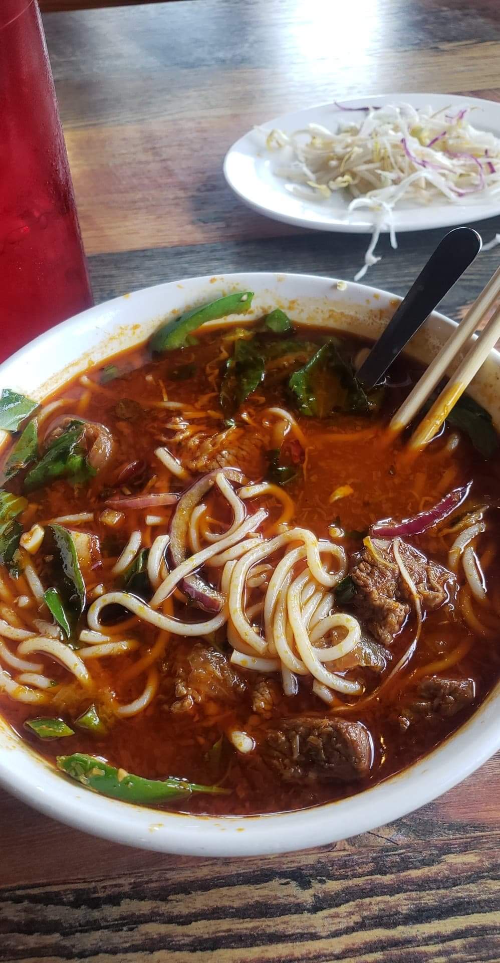Read moreThis was my first time going to Pho Seasons. I initially went because I had a craving for spring rolls, and my brother-in-law suggested this place. The Shrimp rolls are huge, but I expected more flavor. They taste great if you dip them, but I prefer the pre-made ones you find in the sushi part of the grocery store to these. Bare in mind they are not bad at all, just not what I was expecting. However, I also tried Bun bo hue after doing some extensive googling on which Vietnamese dishes to try. And, WOW! Now that dish is sensational. If you like spicy food, I definitely recommend this. It is hearty, spicy, and full of flavor. There was no way to finish it, so I took the rest home with me. The only negative (and it's more of a superficial complaint) that I have to say is over the seats. They're all wooden, and with the combination of spinal issues and pregnancy, I swiftly became a hunchback upon my departure.