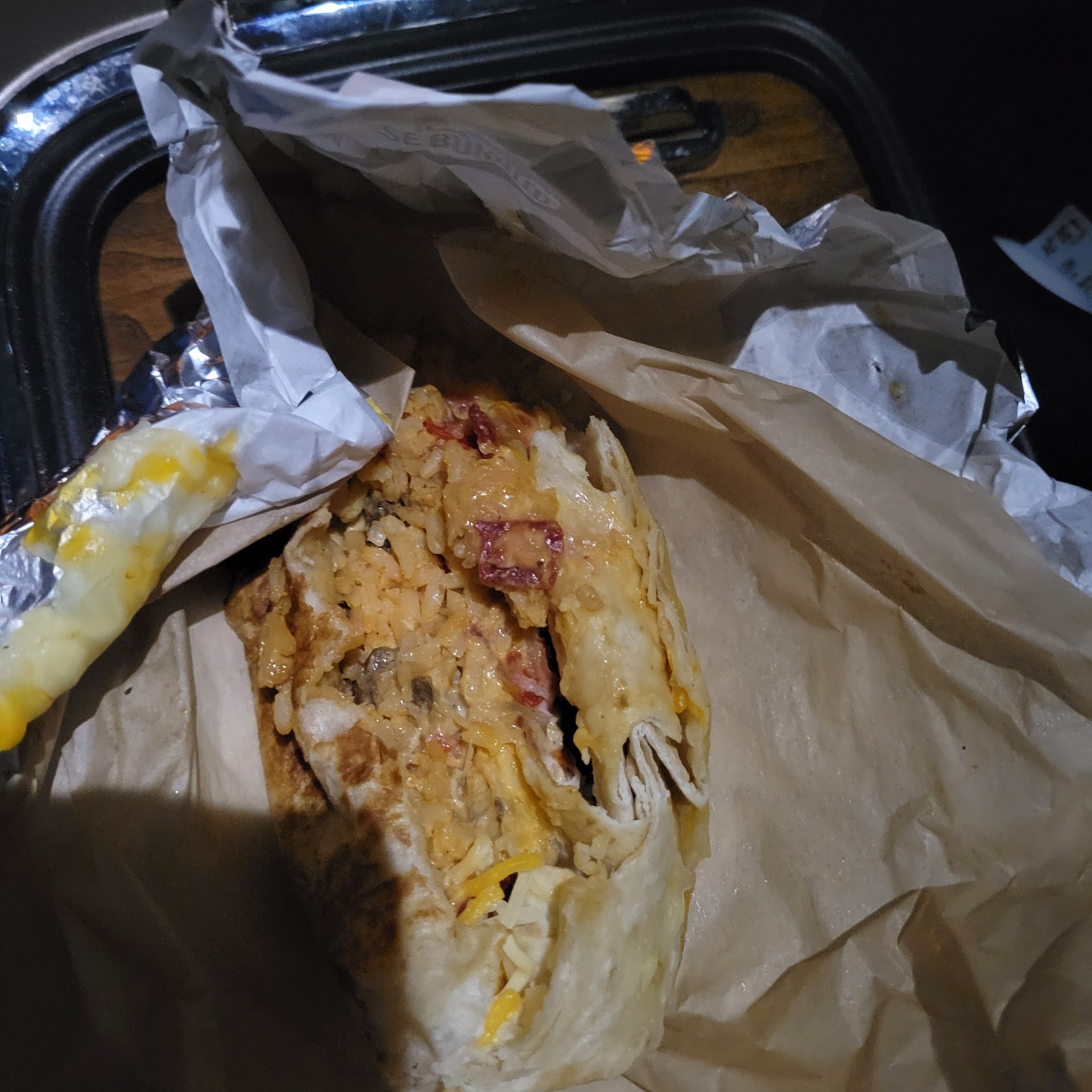 Read moreThis Taco Bell was worse than most I have been to, and most I have been to in the past 10-15 years are pretty low quality. The dining area was low stocked, few sauces, scarce cup lids, no forks or knives. They actually had no plasticware at all in the entire restaurant. I had to eat my fiesta potatoes with my hands. The burrito I had was poorly assembled, and tasted like the beans have been sitting for a while.