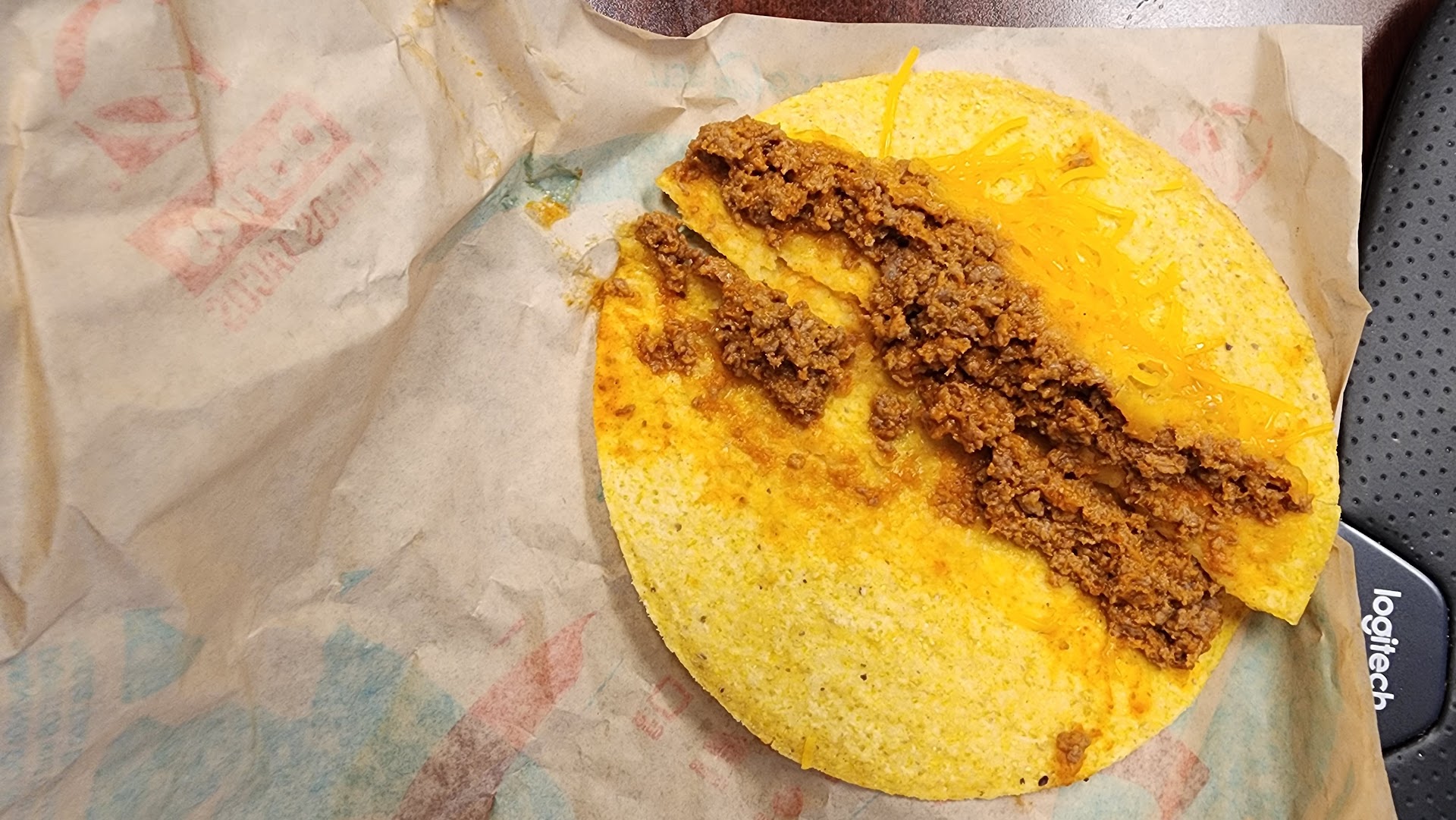 Read moreIf only I could give no stars.....Went through the drive through. The person at the window did not know the menu and was rude.. I asked to add lava sauce on a chalupa in the $5.00 cravings box, she said it came with it ....I know it doesn't, so I said add it anyway.....NOT.....charged me for lava sauce that I did not get...also charged an extra drink to my ticket. These tacos are pathetic. I asked for meat and cheese only. Where the hell is the cheese and why is the taco broken???? At the speaker it was $20.55 but got to the window it was over $22.00...did not give a receipt and when I got back to my office... The only thing they got right was the type of sauce I wanted.......NEVER AGAIN....will I go to this place...I should have stuck to my gut and went across the street to Papadeaux's for takeout. ...