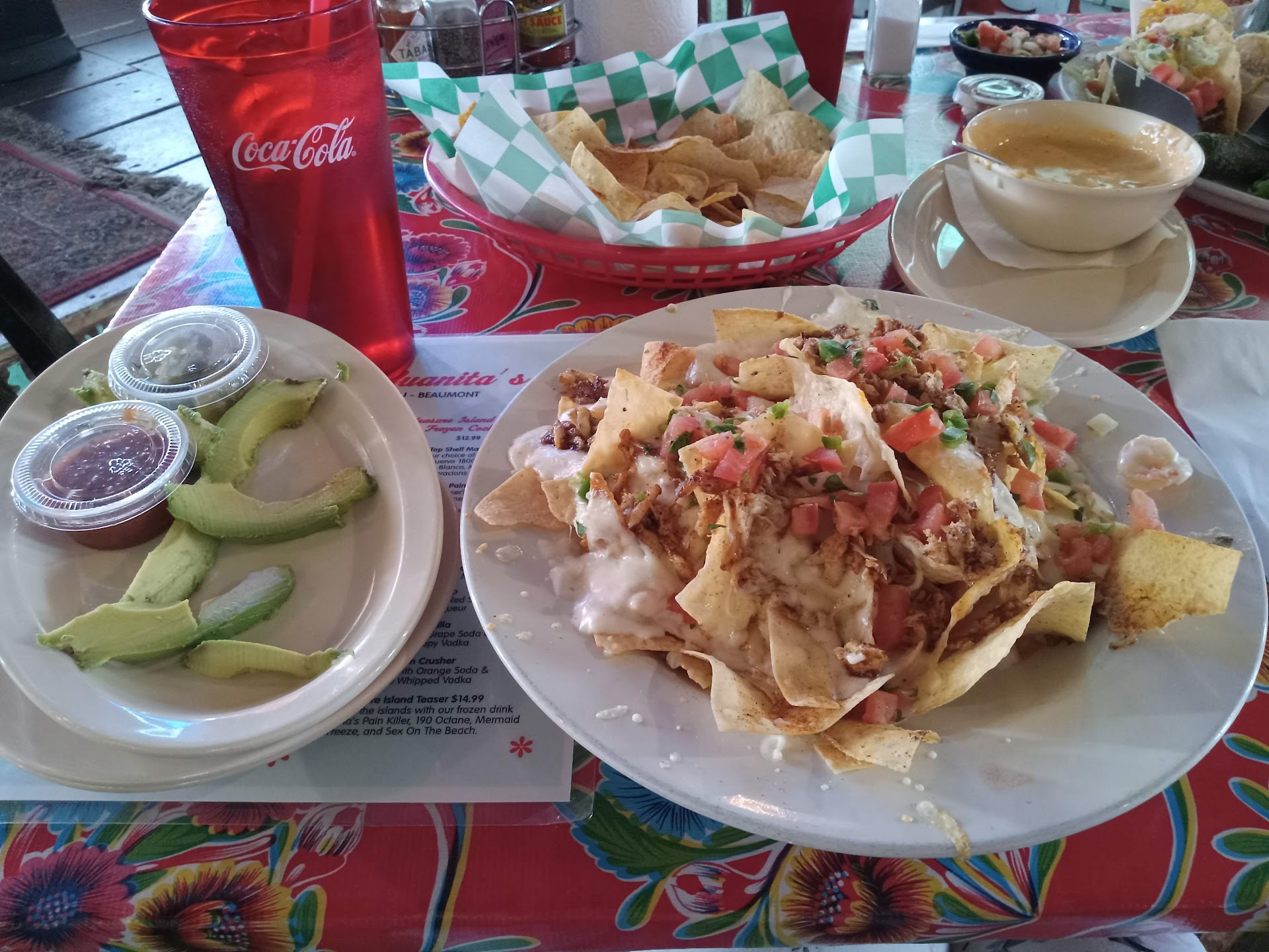 Read moreMain complaints... There was no one available to greet and seat us at the entrance. You have to walk through an area of people dinning to another entryway to cashier. A greeter for the first door to seat us and get drink orders right away would make this establishment solid. (With a few handicap cosmetic fixes to outdoor patio and parking lot) Waitress checked on us often but seemed in a rush. Possibly due to the distance between tables. We sat in first dinning area. Her tables aside from ours were inside the second entryway. (Big distance between and no open view to the other side.) Not her fault. She was definitely doing her best. The food? Well the Queso GROSS! I was regretting going once I saw the Queso wasn't what I expected but when my crab nachos hit the table and I took my first bite YUM but I ordered crab only no lettuce or peppers with sliced avocado instead of guacamole. I was served crab and shrimp and peppers.🤦🏼♀️ ( I have ulcers in fact I had just been discharged from hospital) I'd been searching for crab nachos for weeks and am very picky about certain dishes. They were very generous with the REAL crab meat! It was worth it even though I had to pick through it. My S.O. had tacos and was satisfied with his meal and the service. Please change your Queso recipe! The cheese is a huge no! Cheap cheese that doesn't melt well with other ingredients. You can see in photo we ate the chips as our appetizer but the Queso bowl is still...