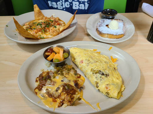 Food: Started with TRIPLE DIP which were amazing with their home made guac (must have). The cheese dip is 2nd and 3rd wasnt crazy about the salsa (have had better but was ok). Wife ordered PORK CHOP BREAKFAST cooked to order and seasoned well. I ordered WEST COAST ARNOLD with Hollandaise and Cholula ranch sauces on the side and hashbrown casserole "extra extra extra crispy" (server recommended since I mentioned I preferred Waffle House hash browns). And yes I did enjoy it - thank you for the recommendation. Put together with a spicy BLOODY MARY made our meal complete. Bloody Mary was really well made. The food was fantastic and everything delicious and...