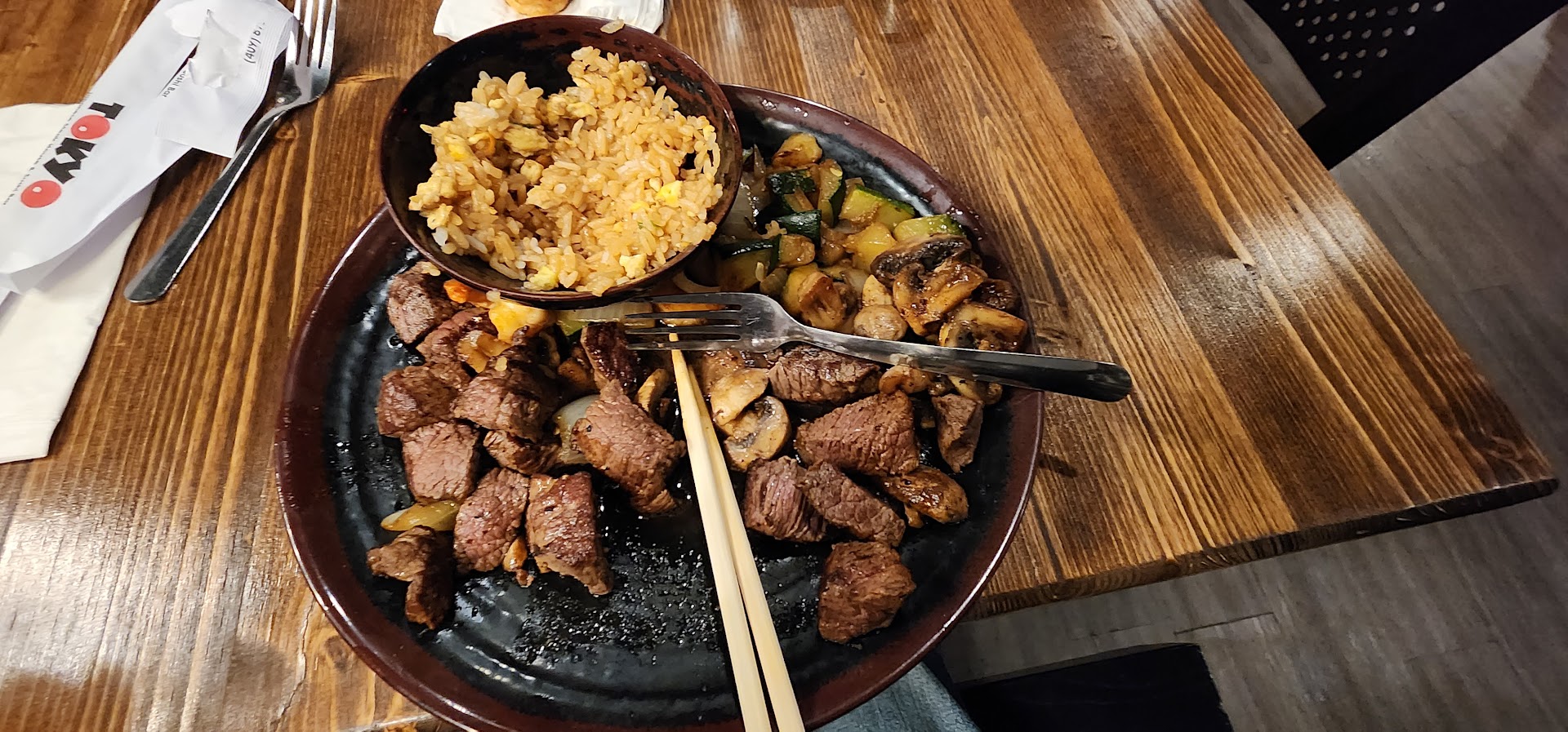 Read moreI quote my Wife, " We will never eat here again" after eating at one of her favorite restaurants. We were seated, A few minutes later we ordered our drinks and a crunch roll, the table next to us was seated about 10 minutes after us, they ordered their drinks and a crunch roll, about 15 minutes later the table next to us got their crunch roll, 10 minutes later we received our roll, about 30 minutes later we received our plates(Hibachi Scallops and Teriyaki Steak) with steam coming off the plates, I dive into my first Scallop and its barely warm, I grab a scrimp and ice cold(not sure if was supposed to be, but I was expecting a hot grilled shrimp), the vegetables were the only thing that was hot. My wife dives into her plate with a piece of steak, looks at me in disgust, she chews and chews and chews, Says that "this is like chewing a cold rubber tire" Neither one of us finished our food and did not even want to go boxes. An expensive meal for one of the worst meals I have ever had at...