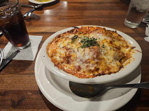 Read moreThis place has gone downhill over the years. The service was great, the restaurant was clean, and the portions are still huge, but the food was awful on this visit for dinner. My salad was old, dead wilted and totally unappetizing. My fettuccine Alfredo was dry as a bone with very little sauce on it, but the noodles were cooked perfectly at least. My calamari appetizer was mostly banana peppers rather than actual calamari so it looked like a very large portion, but since it was mostly peepers, it was very disappointing. What calamari was there, were very tiny pieces from tiny squids, but the marinara sauce was good. I would never order it again. My husband's lasagna was overpowered by so much Parmigiano cheese, as was the artichoke dip. It was really overwhelming. That's all that could be smelled or tasted and it was quite unpleasant. We boxed up most of our food to be given to our neighbors so as not to waste it by throwing it away. My nephew's 10" pizza was good & tasty though so he lucked out for getting the good food..lol I think next time, I'll stick with pizza and skip all the other stuff. That's IF there is a next time. They need to lay off the Parmigiano cheese quantities in their foods, it's just too much so it made most of the food unappetizing. I'd also suggest giving the option of getting plain Italian bread pieces for dipping into their delicious oil & seasonings because they've been using the same overpoweringly seasoned bread for 20 years now and I still can't even eat it. Give plain, crusty Italian bread as an option at least in the future PLEASE! We were never offered dessert after dinner so I don't know if they even serve dessert anymore.. lol They used to have the best cheesecake in the world years ago and once they stopped serving that, we were very disheartened, but nothing was offered at all, sadly. Truthfully, after the bad meals, desert could've at least tried to make up for it, but no such luck. Sure we could've asked what they had, but at that point, the disappointment was enough to just ask for the check. After that dinner fiasco, I don't think we'll ever be back again as we've given up on this restaurant after coming here many times over many years & saw how it's changed. If we do return, it'll strictly be for their...